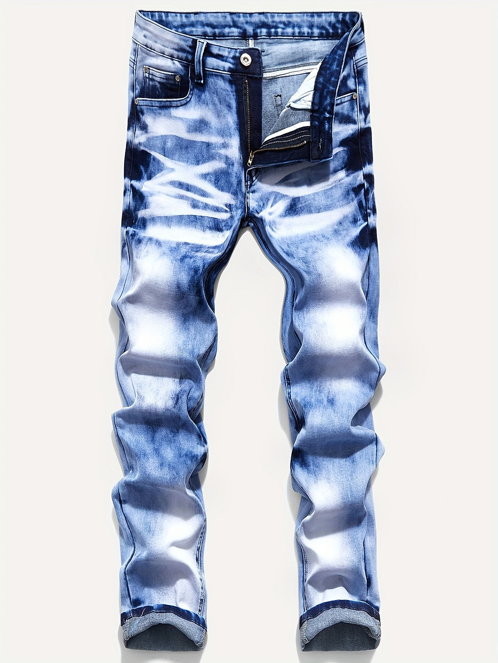 Cotton Blend Men's Stylish Denim Jeans, Irregular Tie-Dye Design Non-Stretch Tre