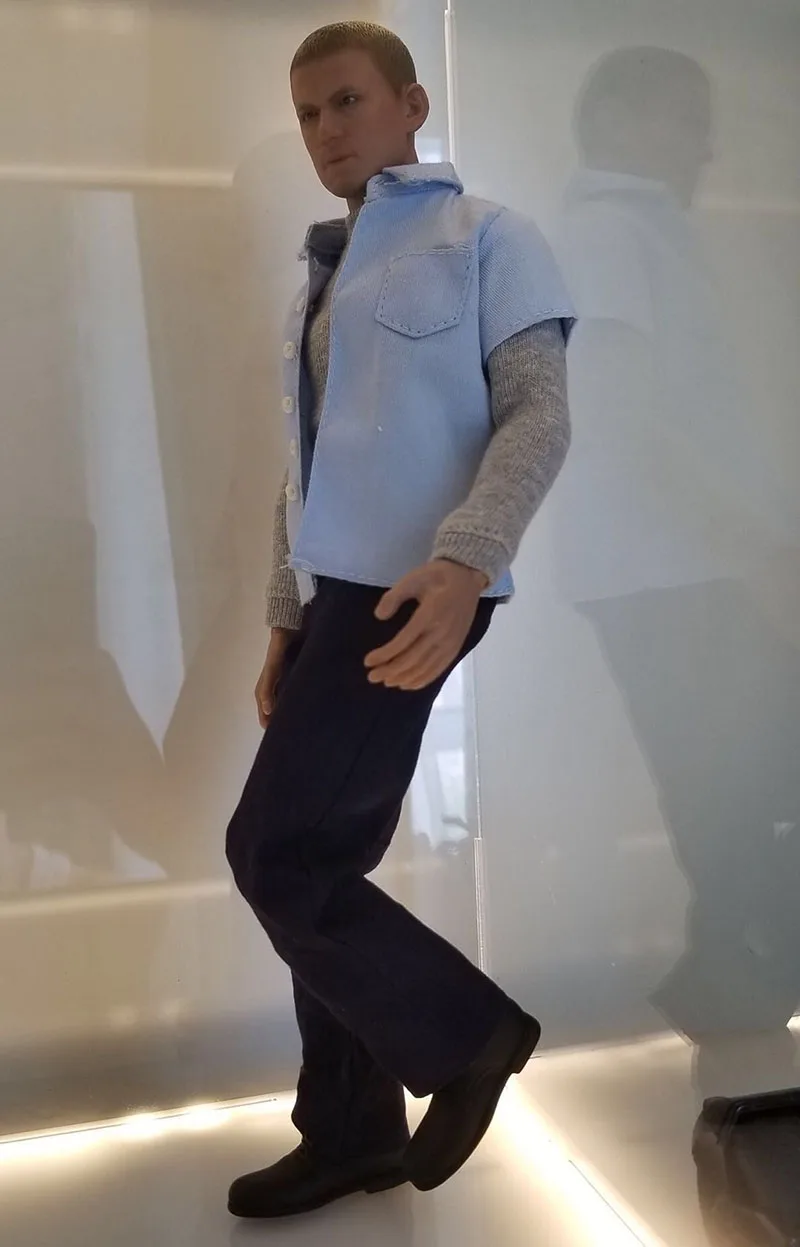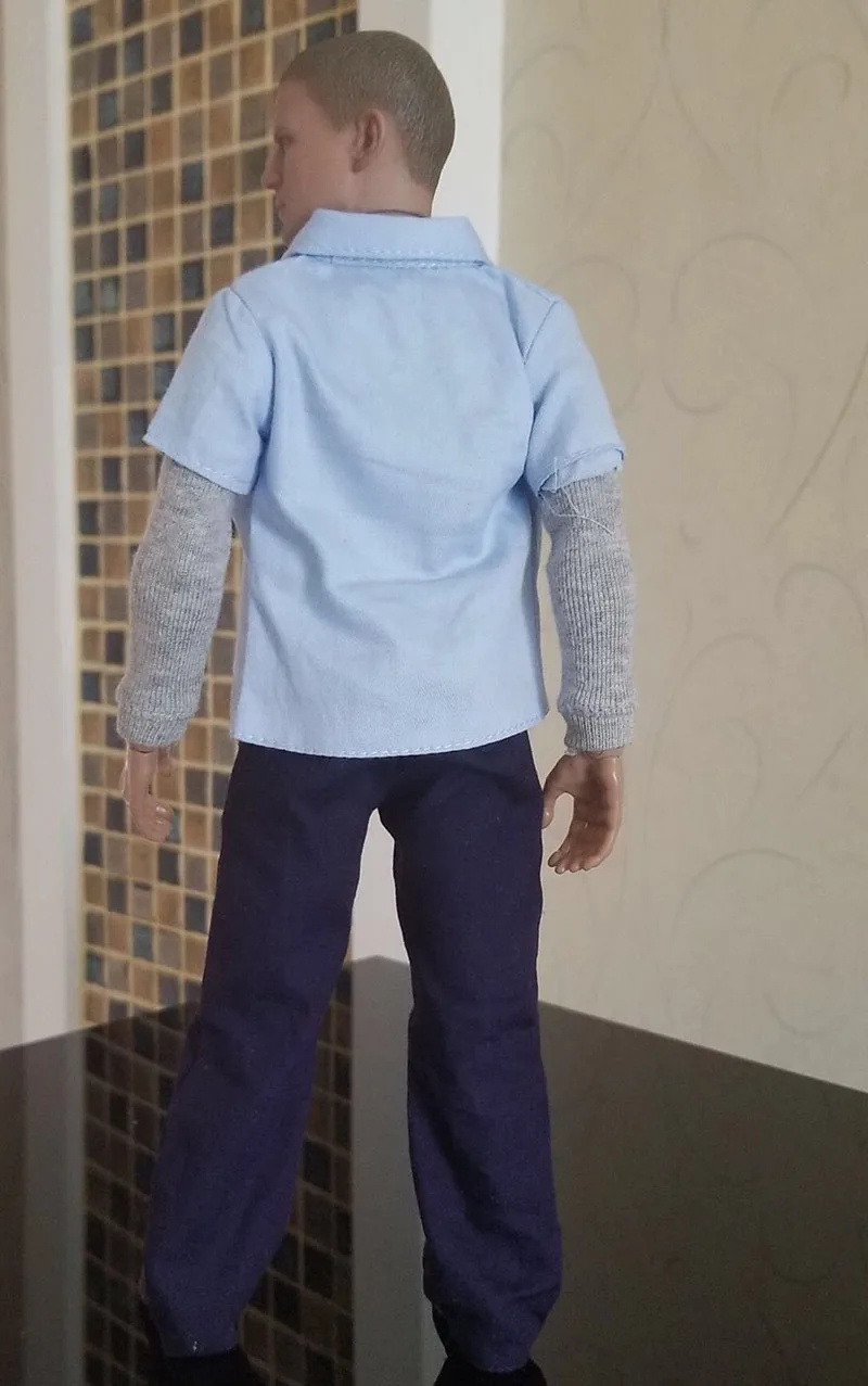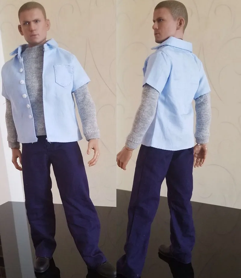 1/6 Men Soldier Prison Break Actor Prison Uniform Shirts Grey T-Shirt Blue Pants