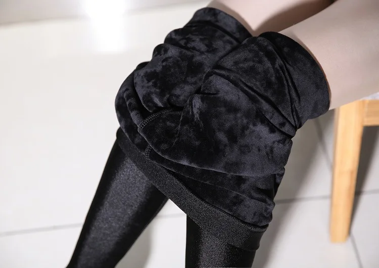 2024 Large Size 4xl Ladies Winter Leggings Velvet Padded Glossy Pants Bright Out