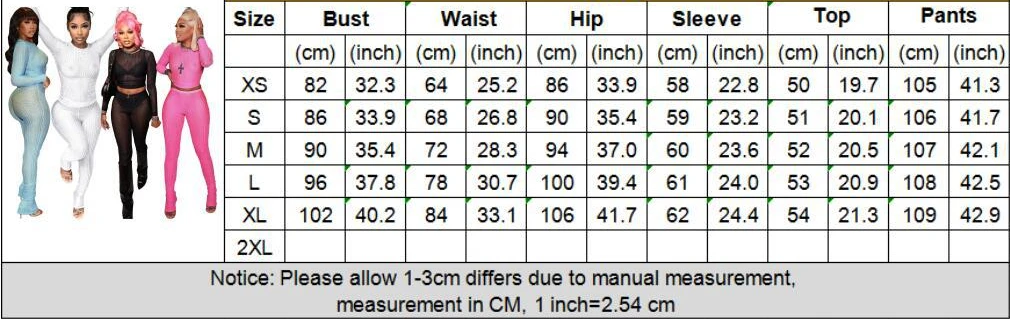 2024 Sexy Solid See Through Hollow Out Slim 2 Piece Set Women Long Sleeve Round