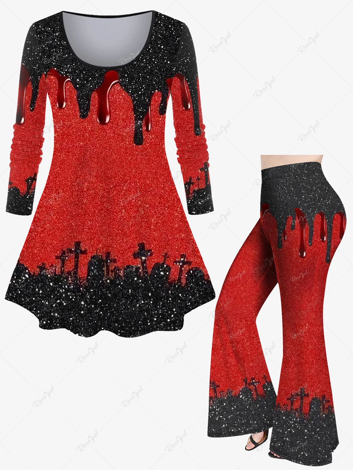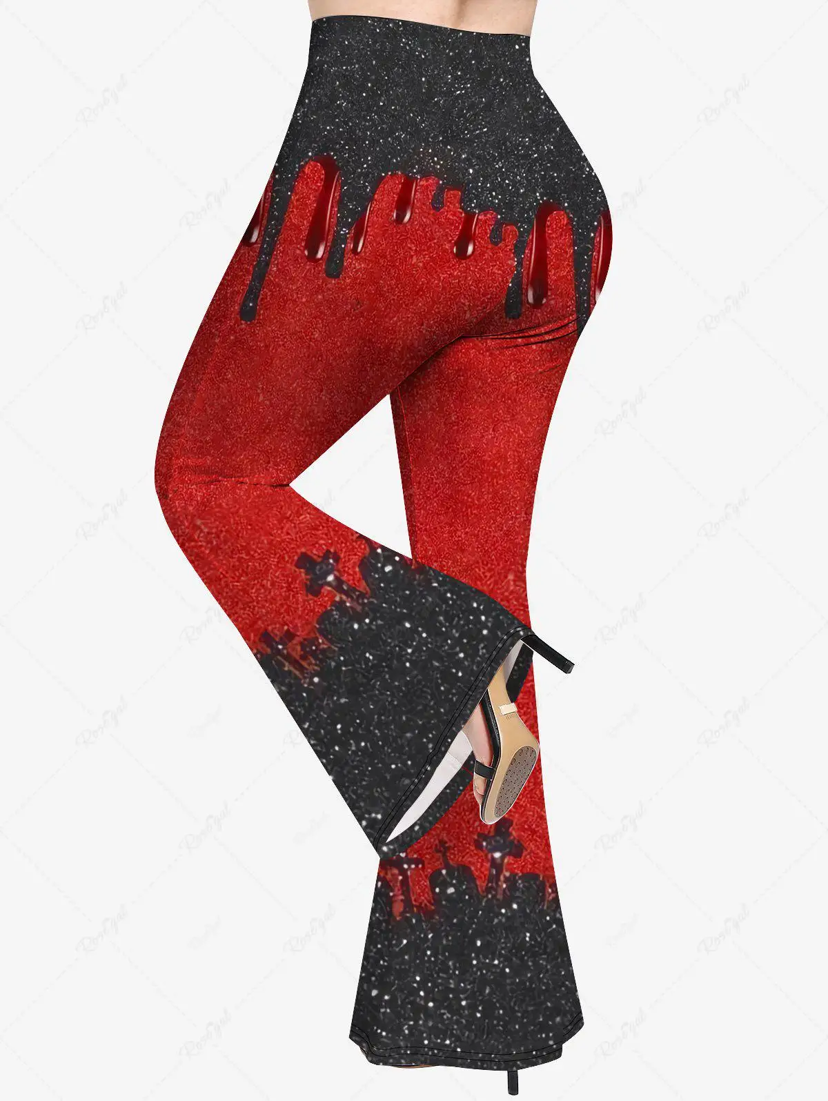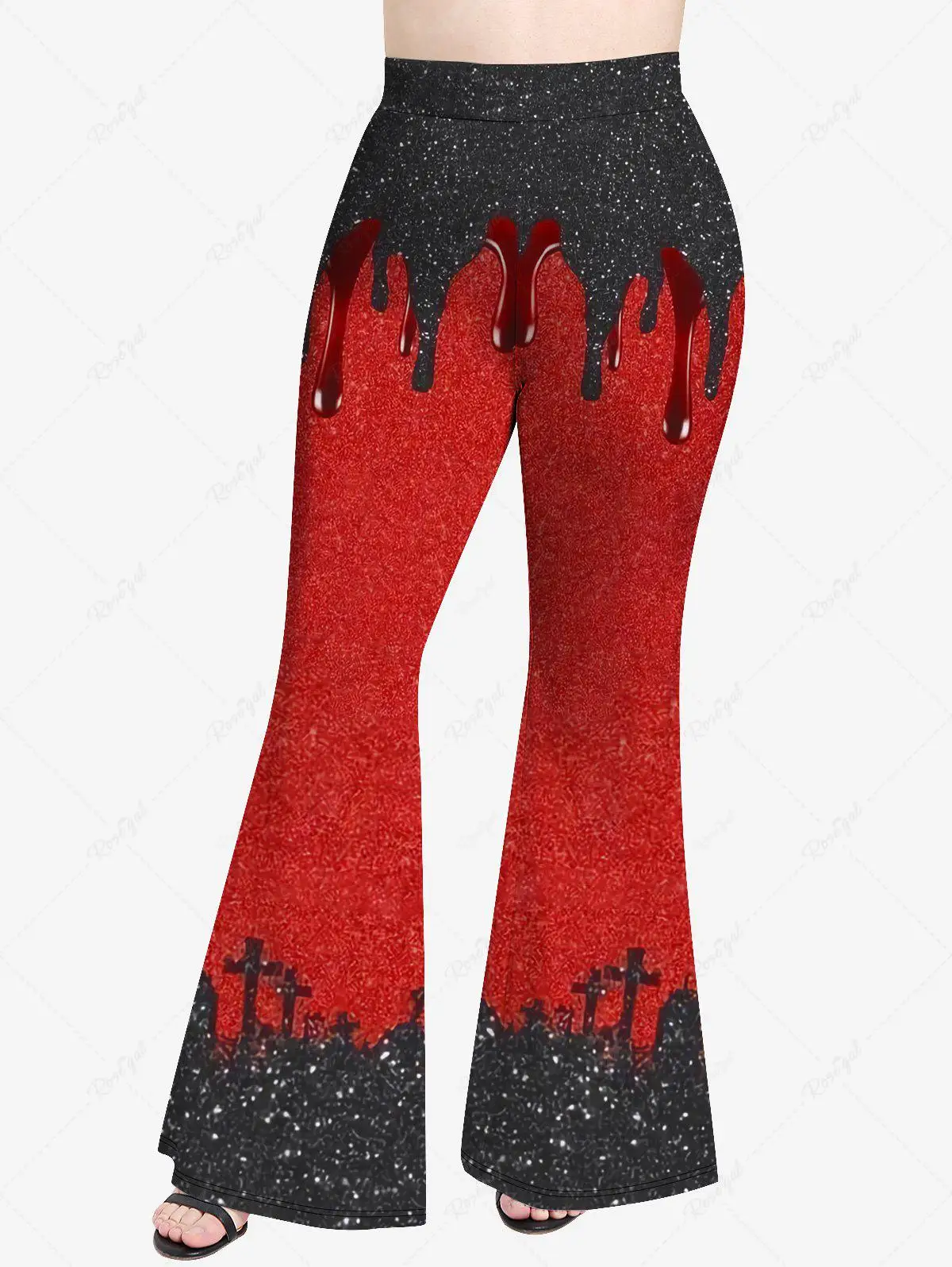 Plus Size 3D Paint Drop Blobs Sparkling Glitter Cross Print Flare Pants