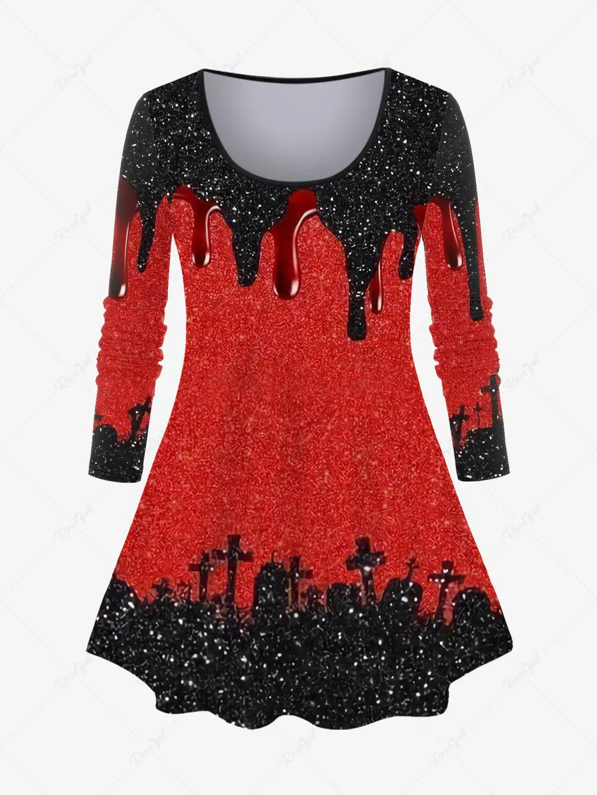 Plus Size 3D Paint Drop Blobs Sparkling Glitter Cross Print T-shirt
