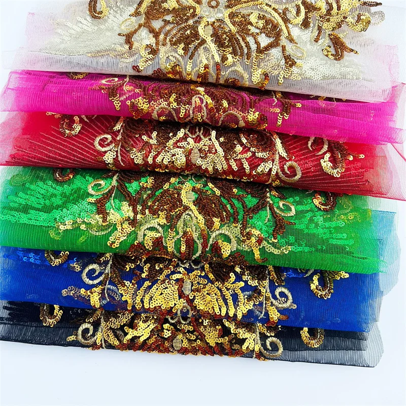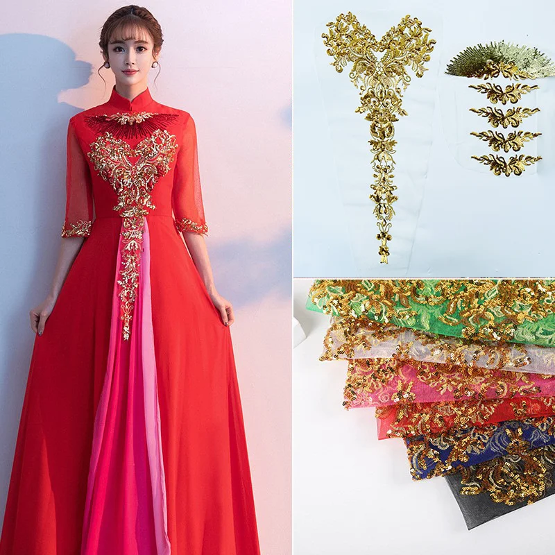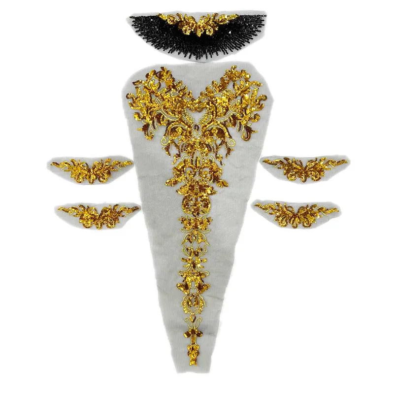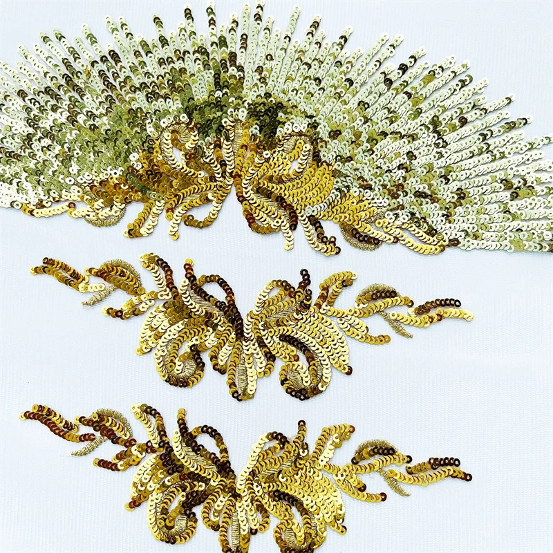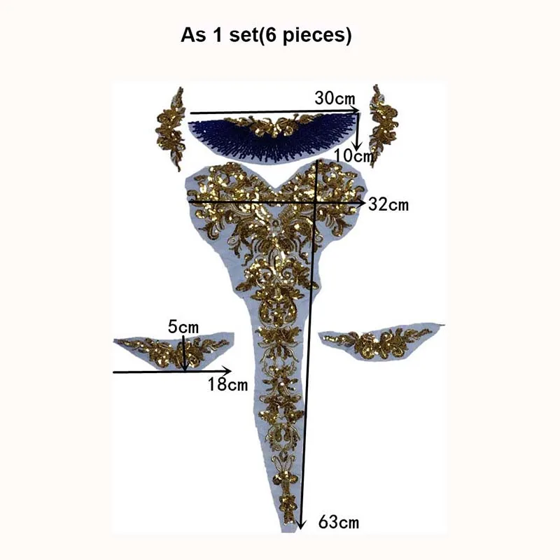6PCS Large Flowers Gold Sequin Patches And Appliques,Embroidery Lace Applique Se
