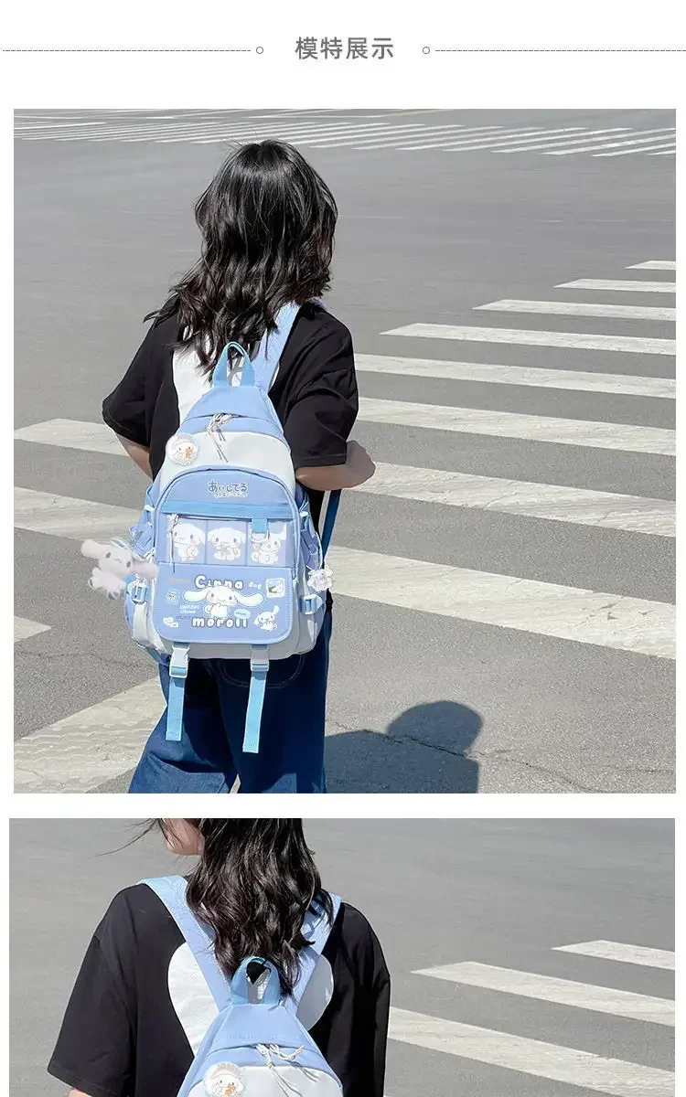 Anime Sanrioed Plush Toy Cinnamoroll Backpack Children Girl Boy Blue Schoolbag K
