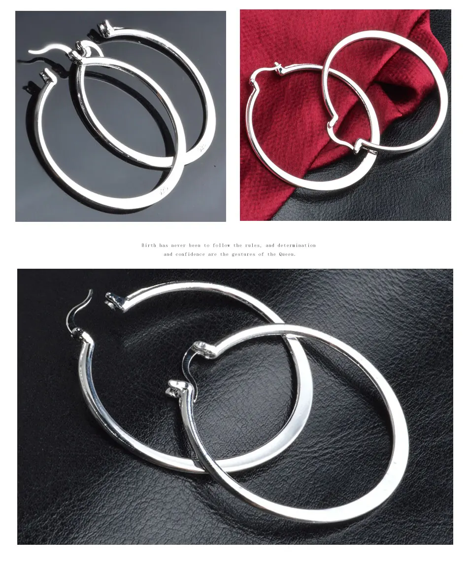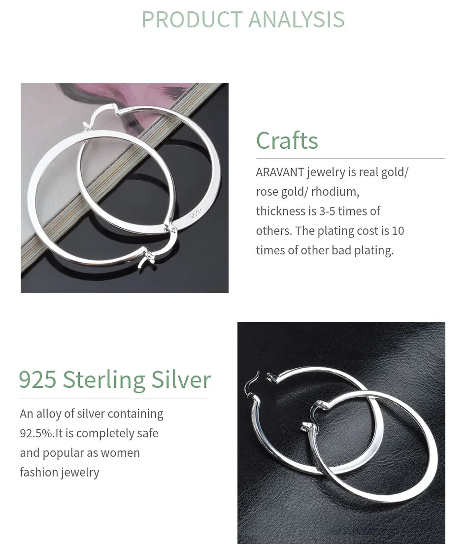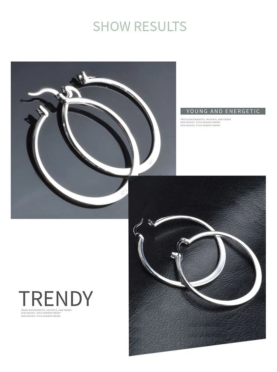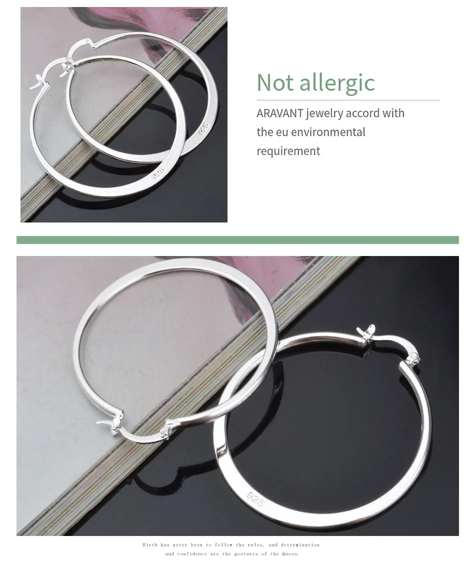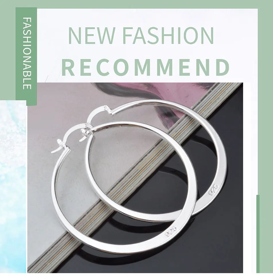 Aravant 925 Silver 55MM Flat Hoop Earring For Women Fashion Jewelry Gift