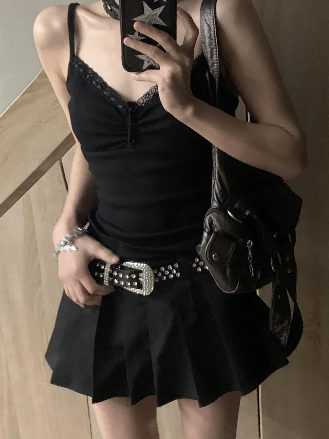 Black Camisoles Women Y2k Tops Hot Girls Sexy Lace Punk Streetwear Fashion Summe
