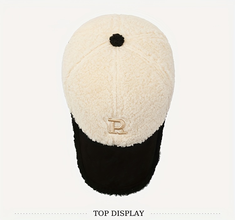 Classic Letter R Embroidery Baseball Cap Color Block Coldproof Warm Dad Hats Plu