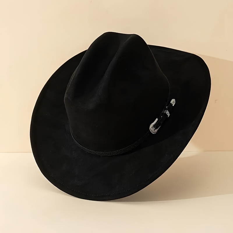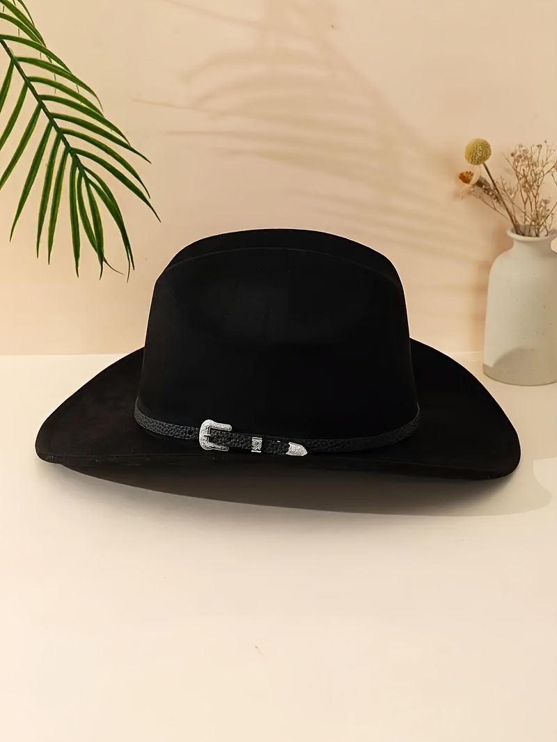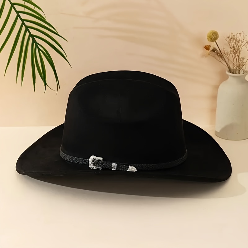 Classic Men's Western Cowboy Hat with Detachable Fashion Belt - Black Suede Velv