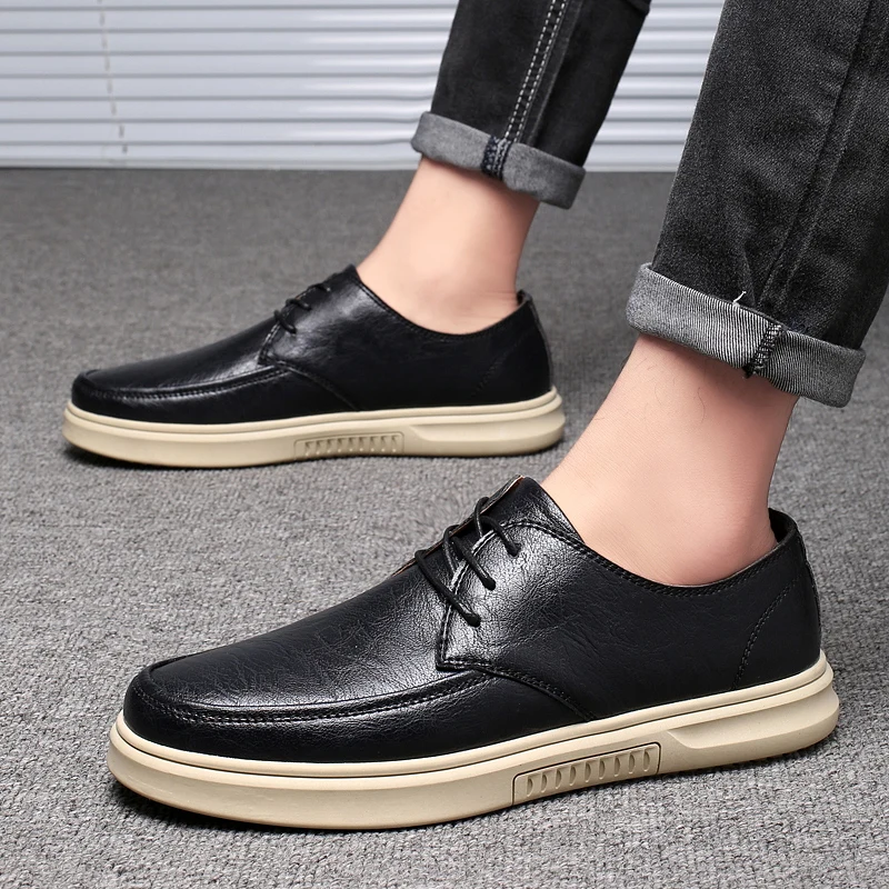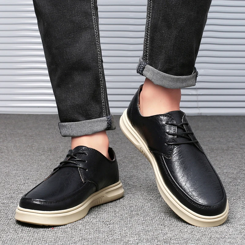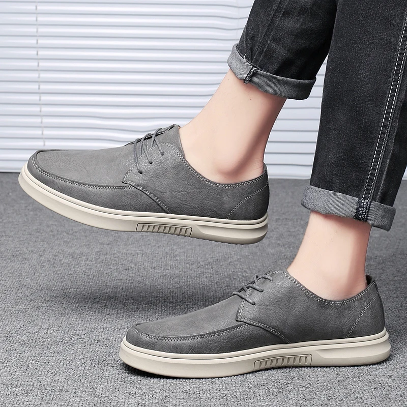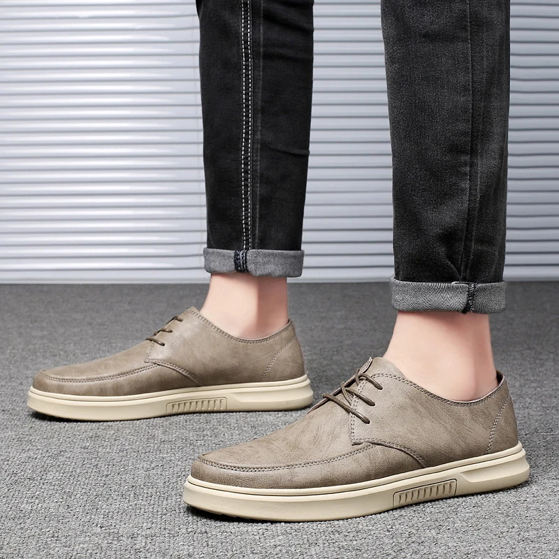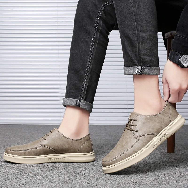 Genuine Leather men shoes lace up Breathable Casual Men oxfords Shoes Man Mocca