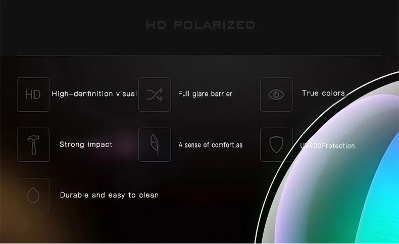 Lens Material: Polarize,100% UV 400 Protection against harmful UVA/UVB RAYS