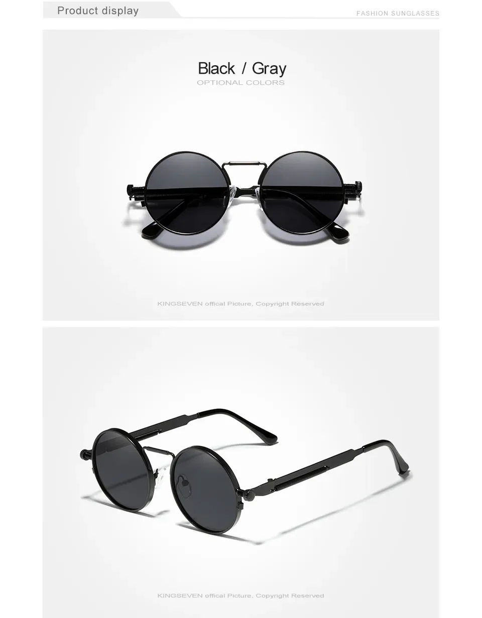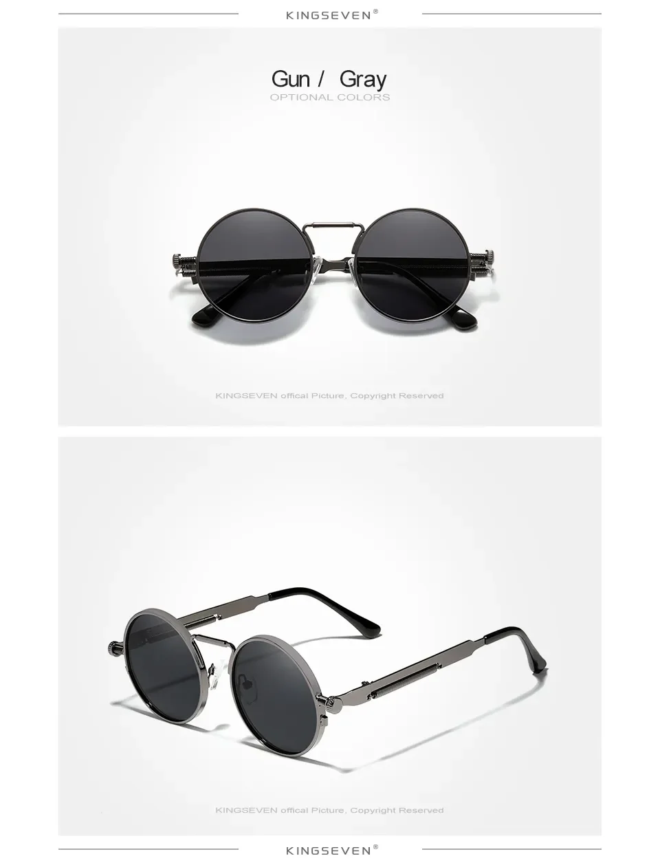 KINGSEVEN 2024 Polarized Men Sunglasses UV400 Gothic Steampunk Style Male Round