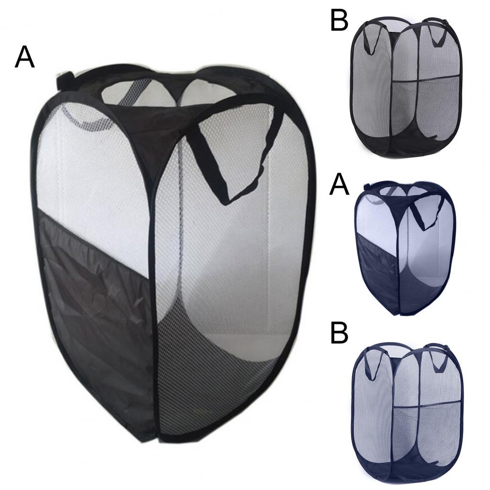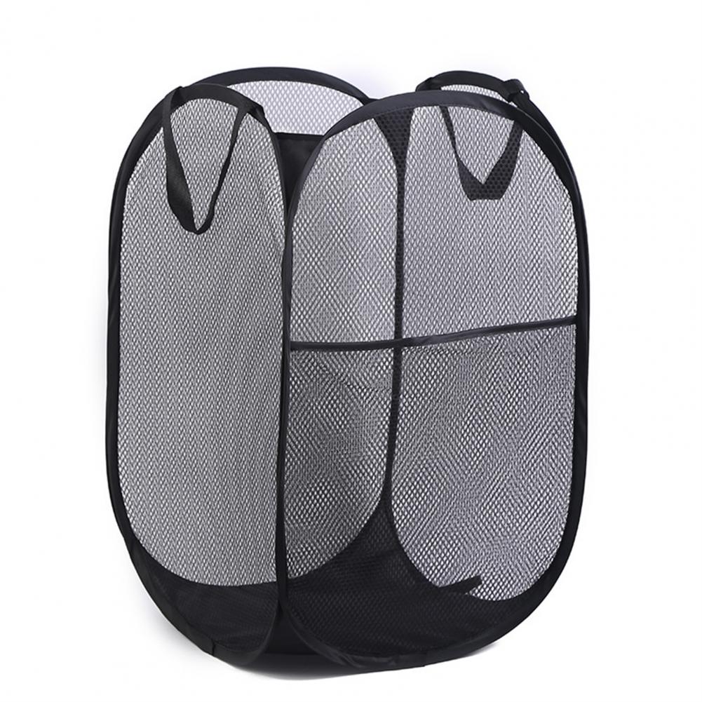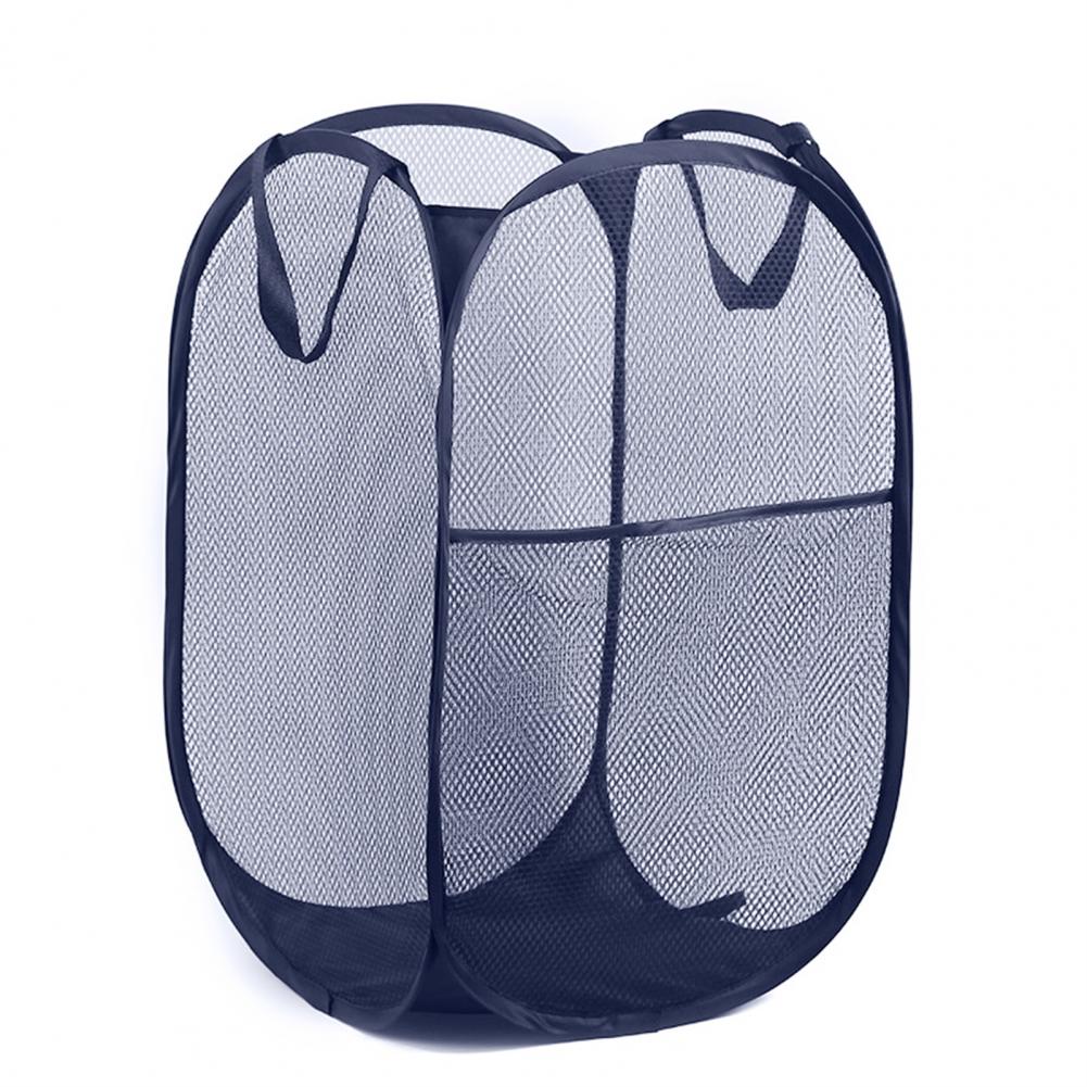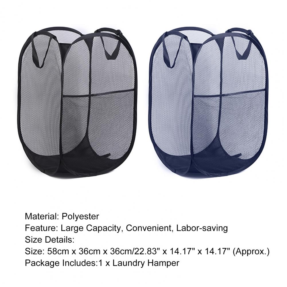 Folding Laundry Hamper Freestanding Polyester Space Saving Mesh Laundry Basket Household Supplies
