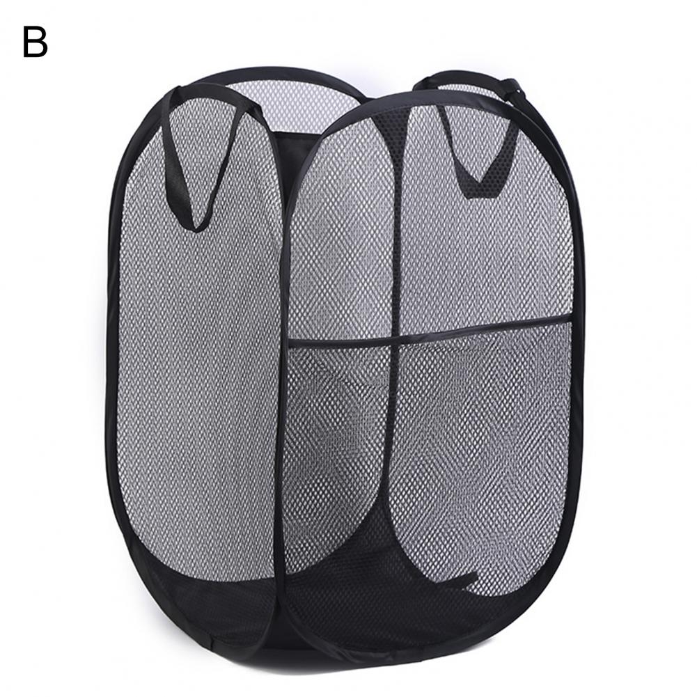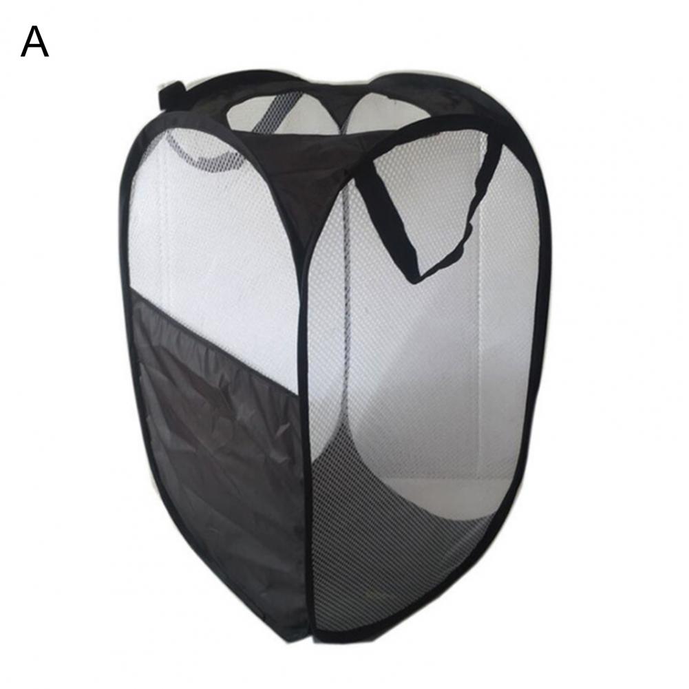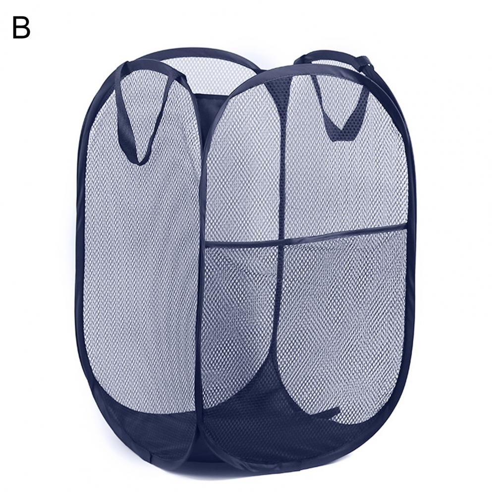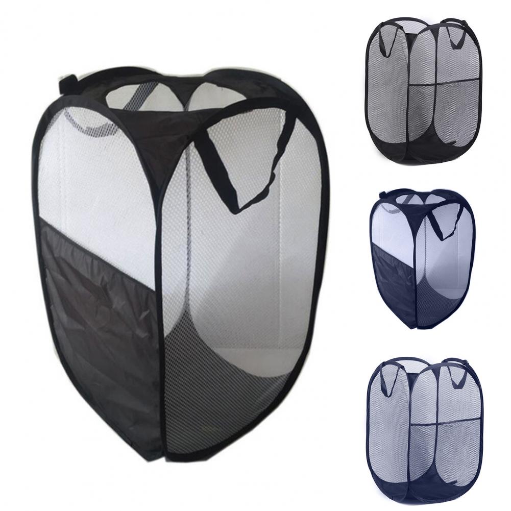 Folding Laundry Hamper Freestanding Polyester Space Saving Mesh Laundry Basket Household Supplies