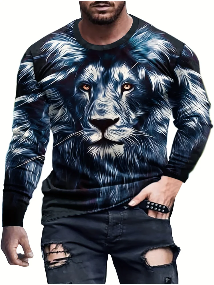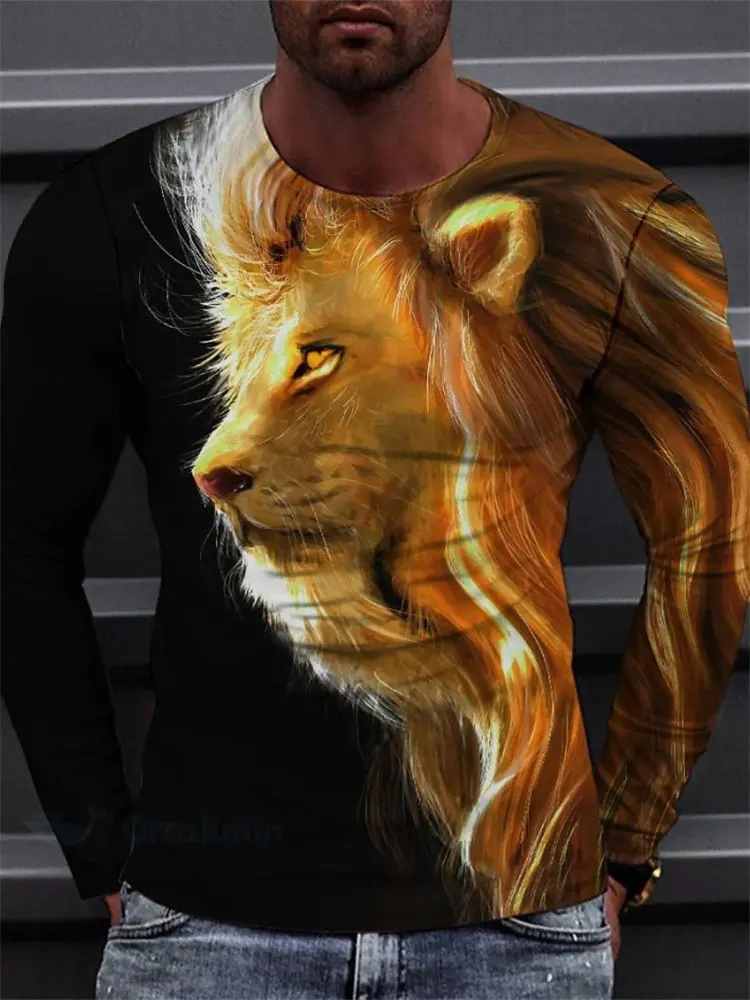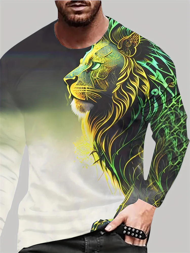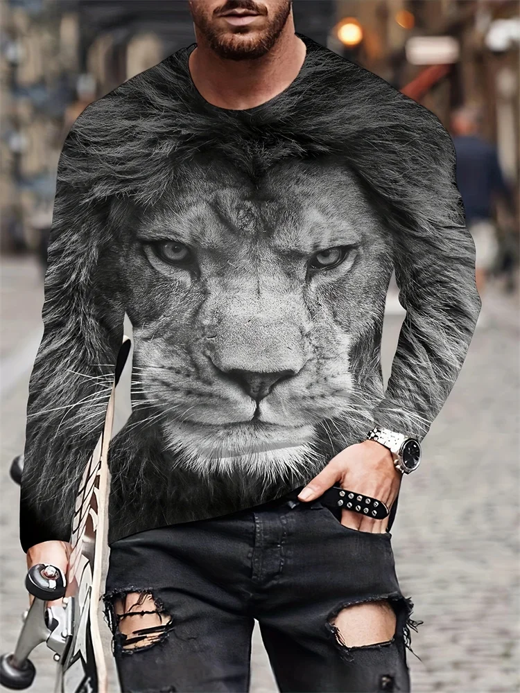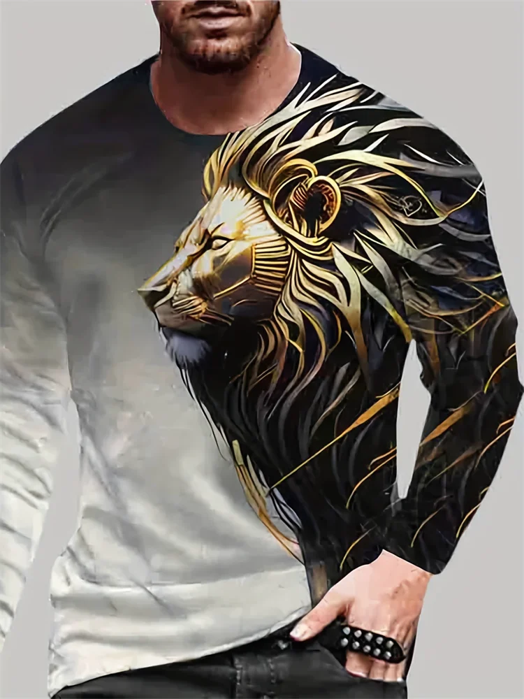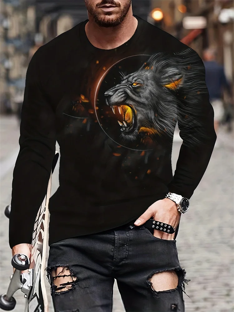 Lion Print Long Sleeve T-shirt Spring And Autumn Men's Daily Casual Long Sleeve