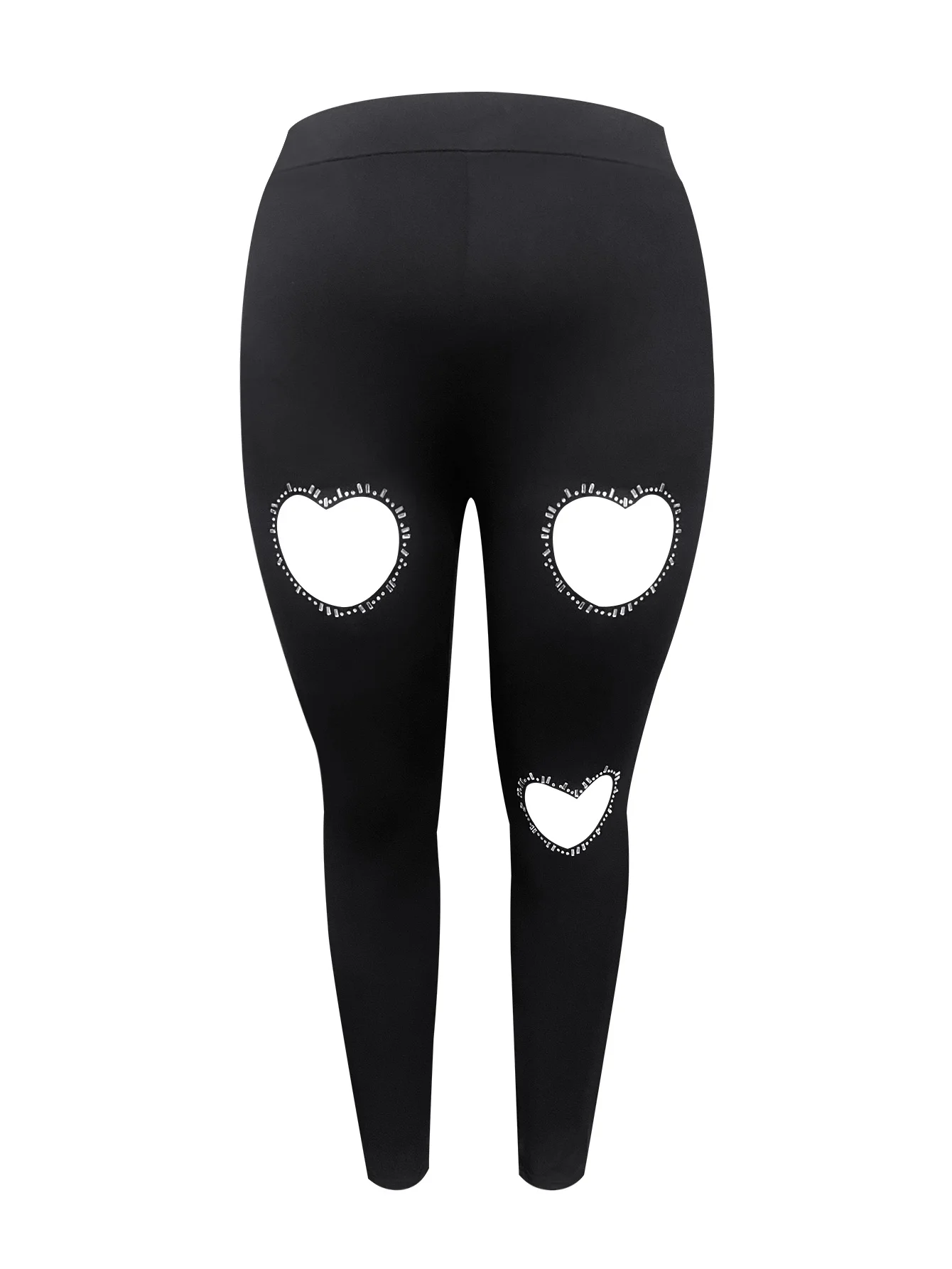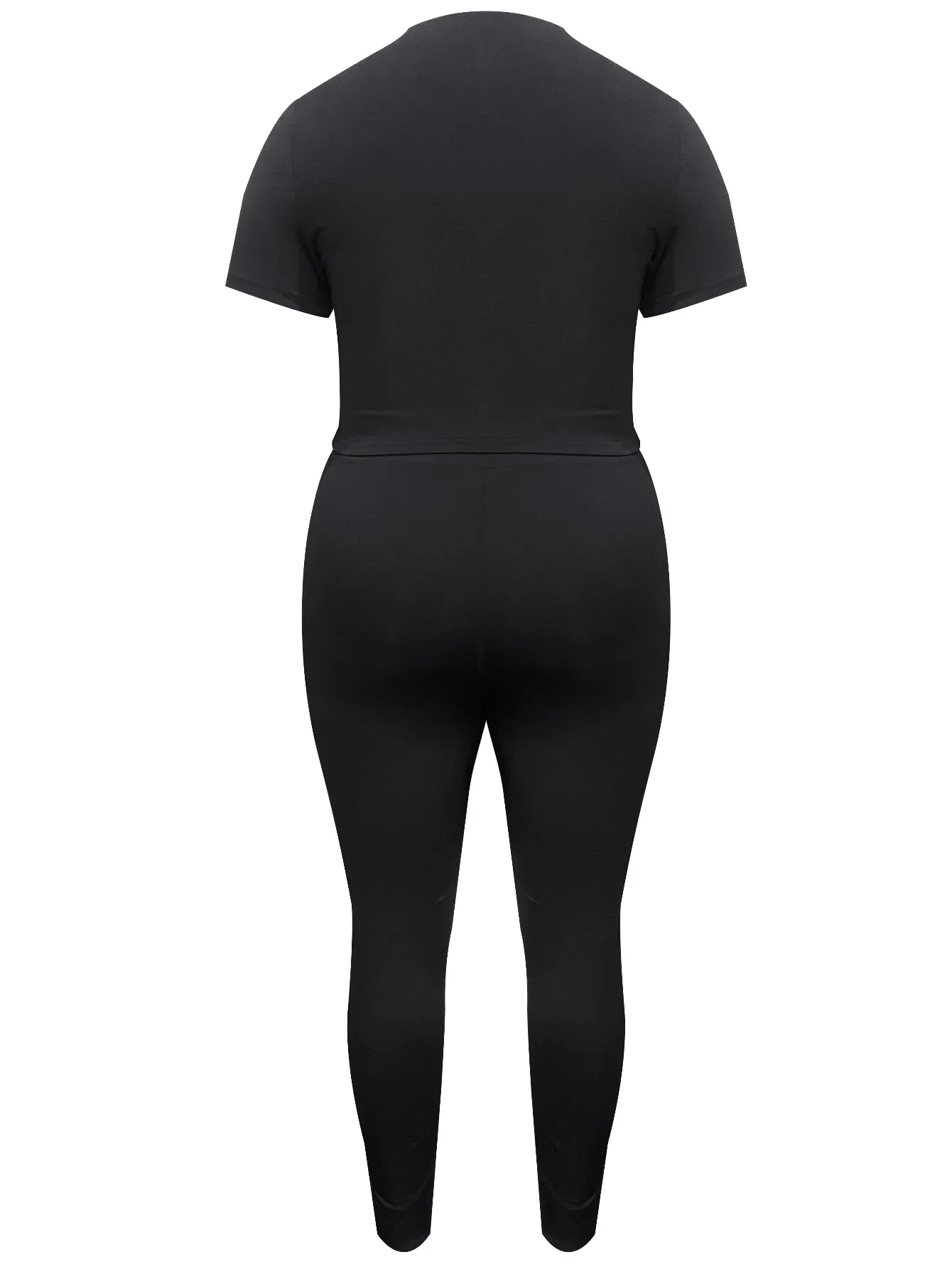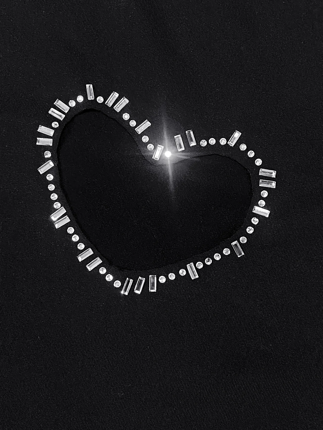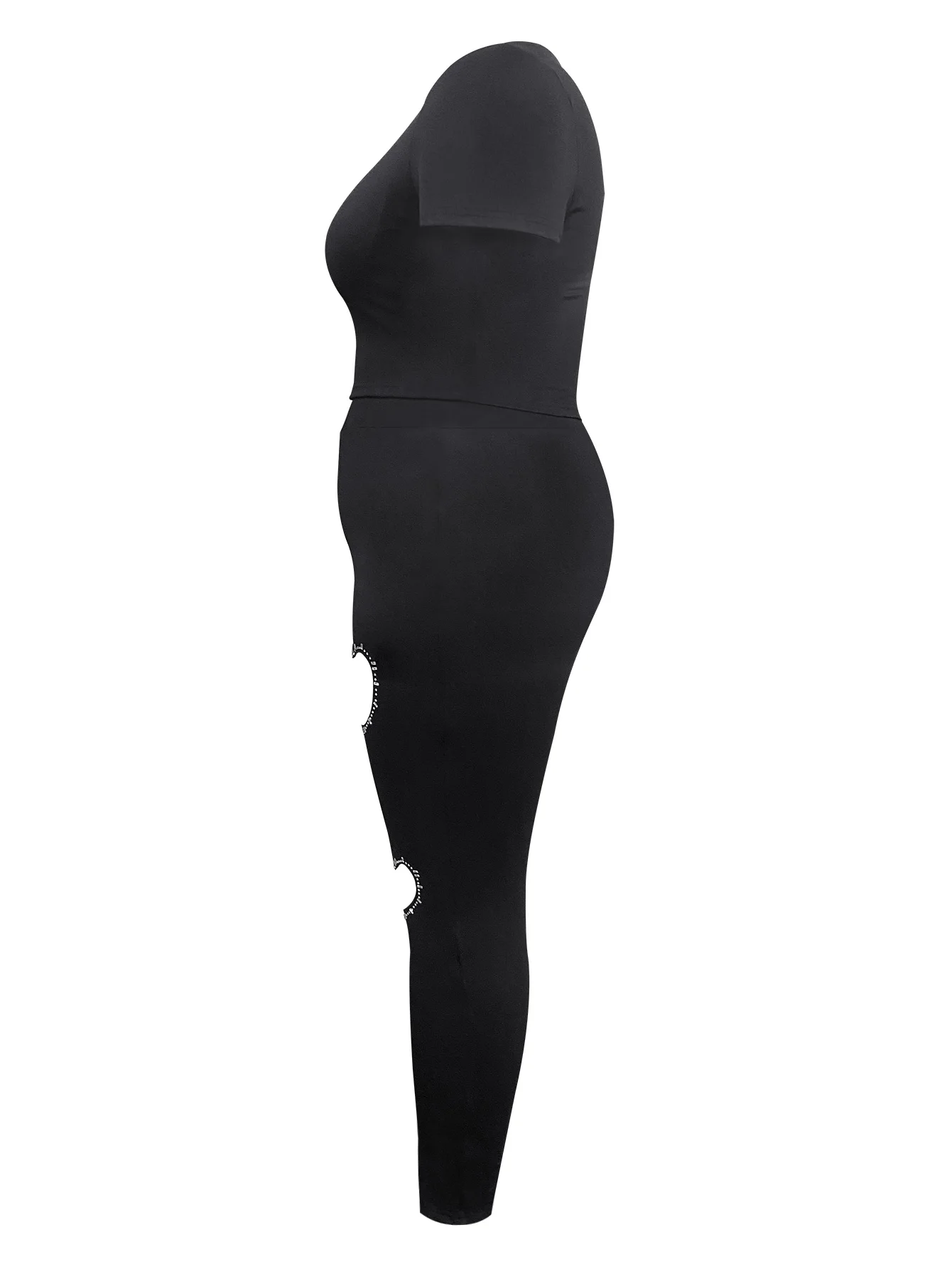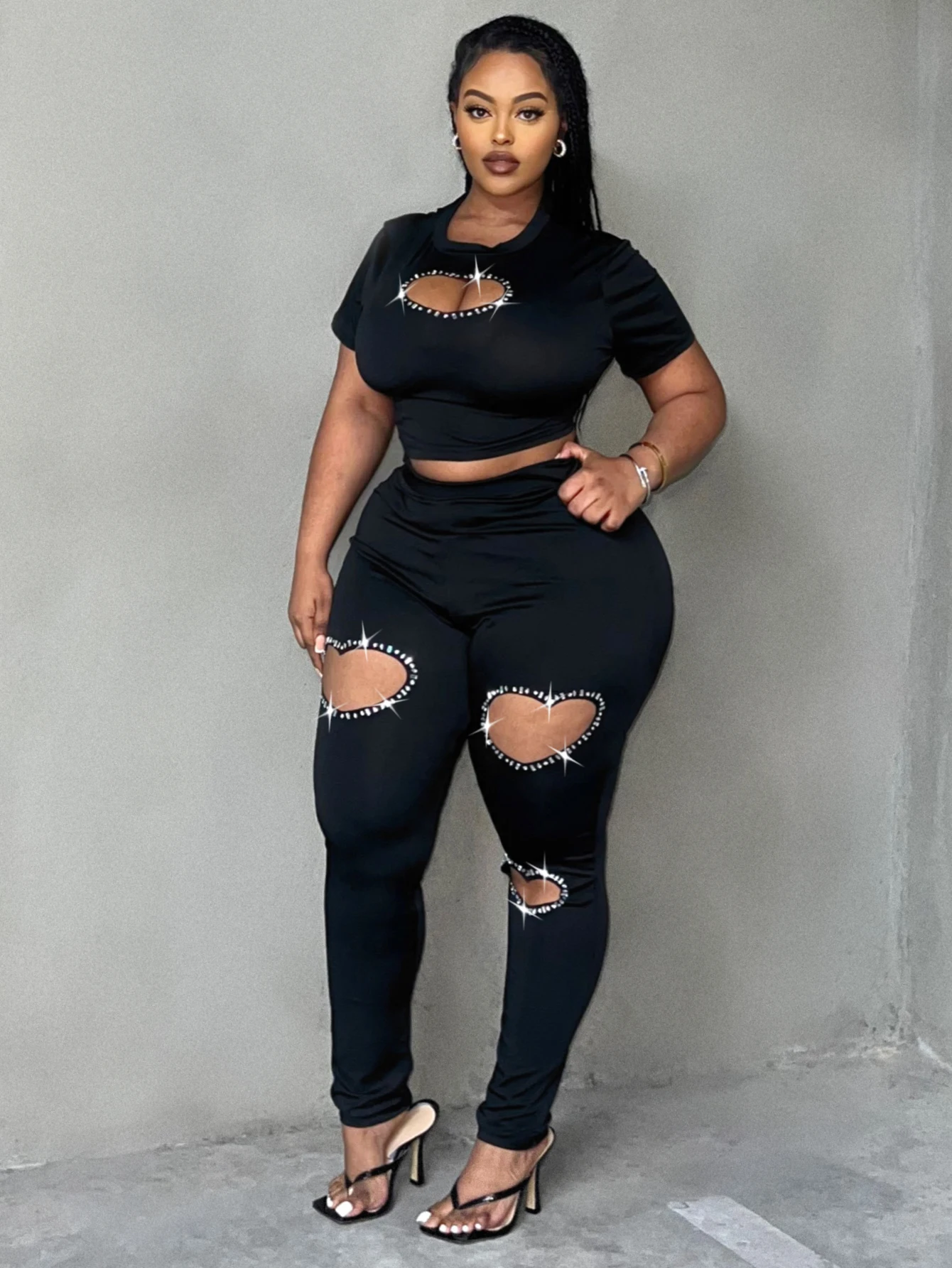 LW Crop Top Rhinestone Heart Decor Pant Set Women Spring Summer Short Sleeve T-s