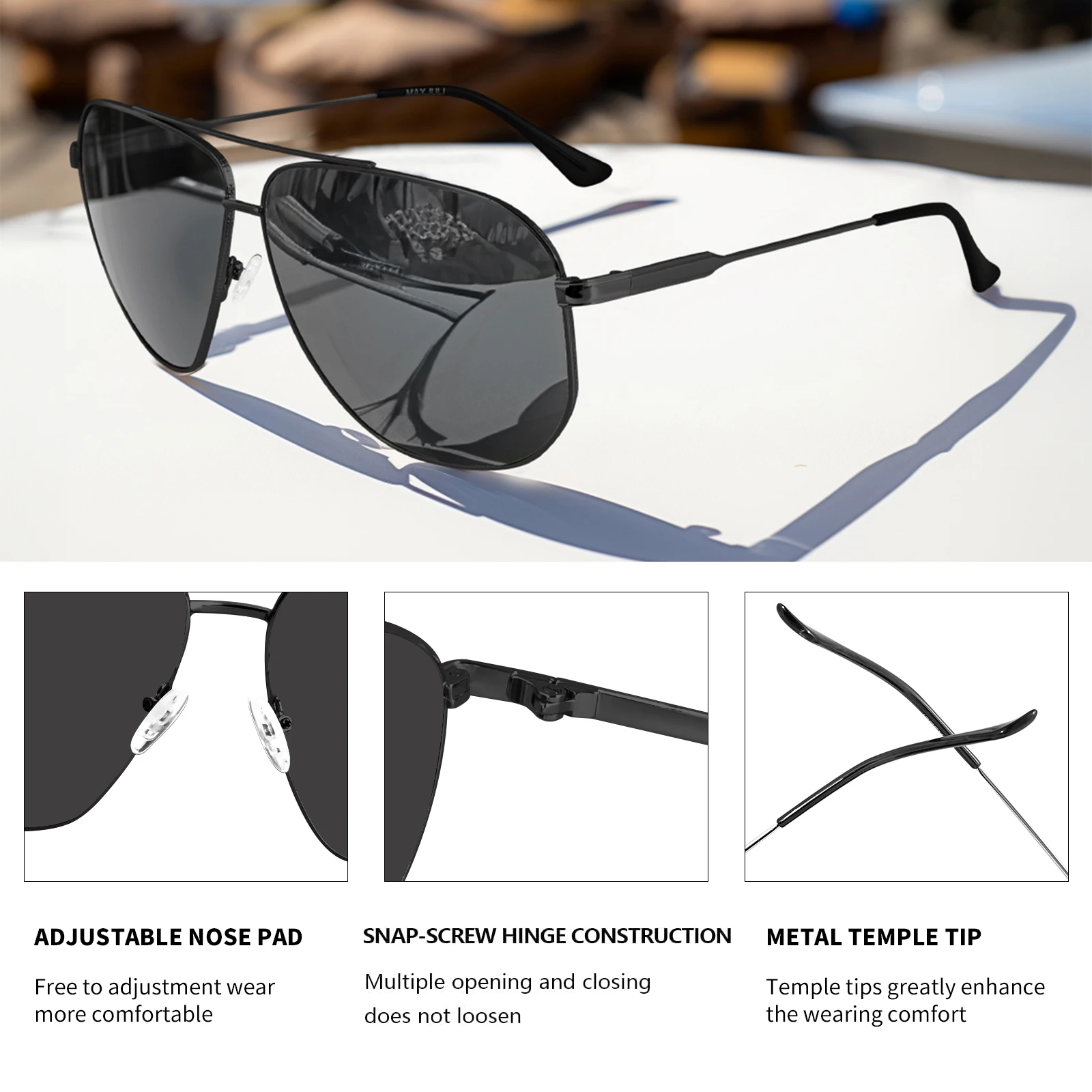 【Perfect All Rounder】 These MAXJULI aviator sunglasses are the perfect choice for outdoor sports and activities such as driving, shopping, traveling, hiking, and are suitable as a high fashion accessory and daily wear all year round.
