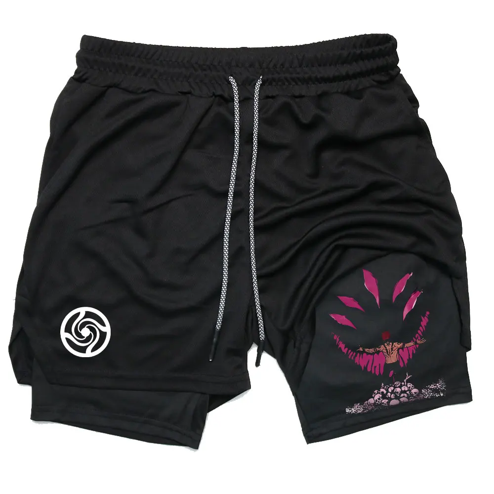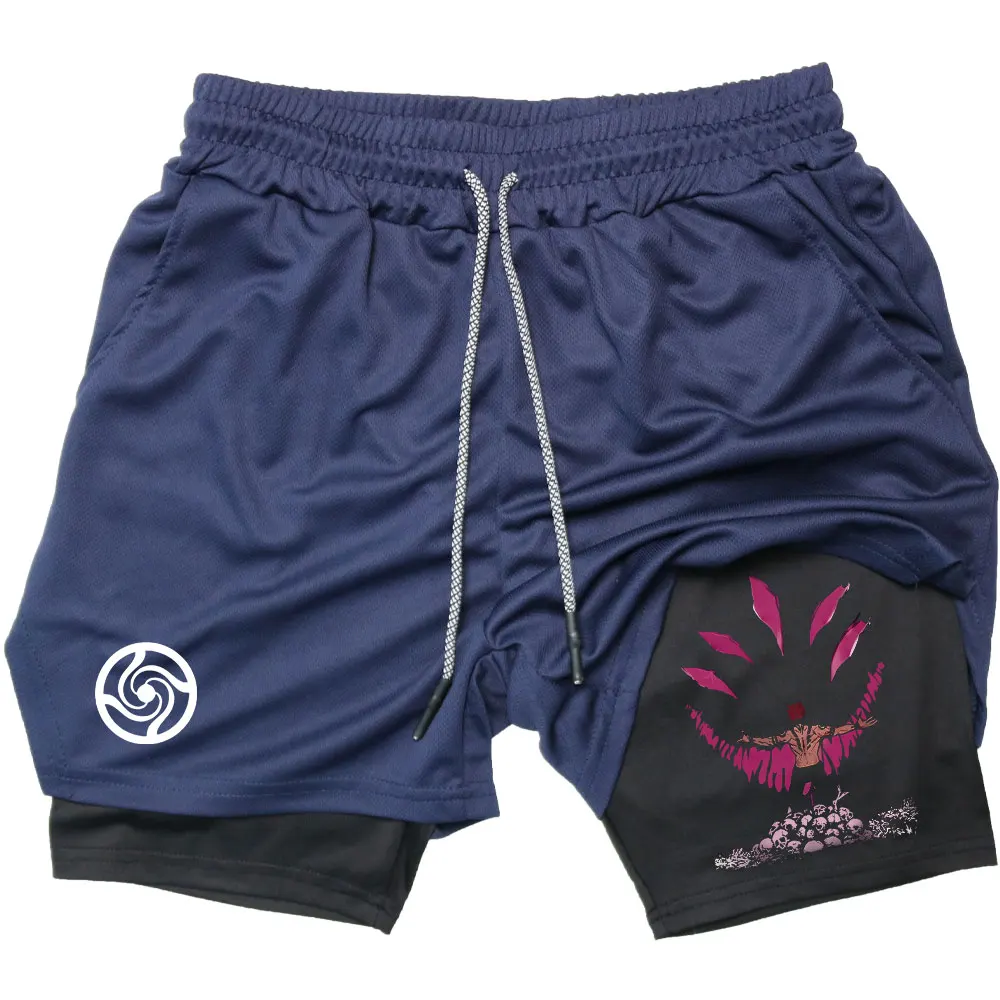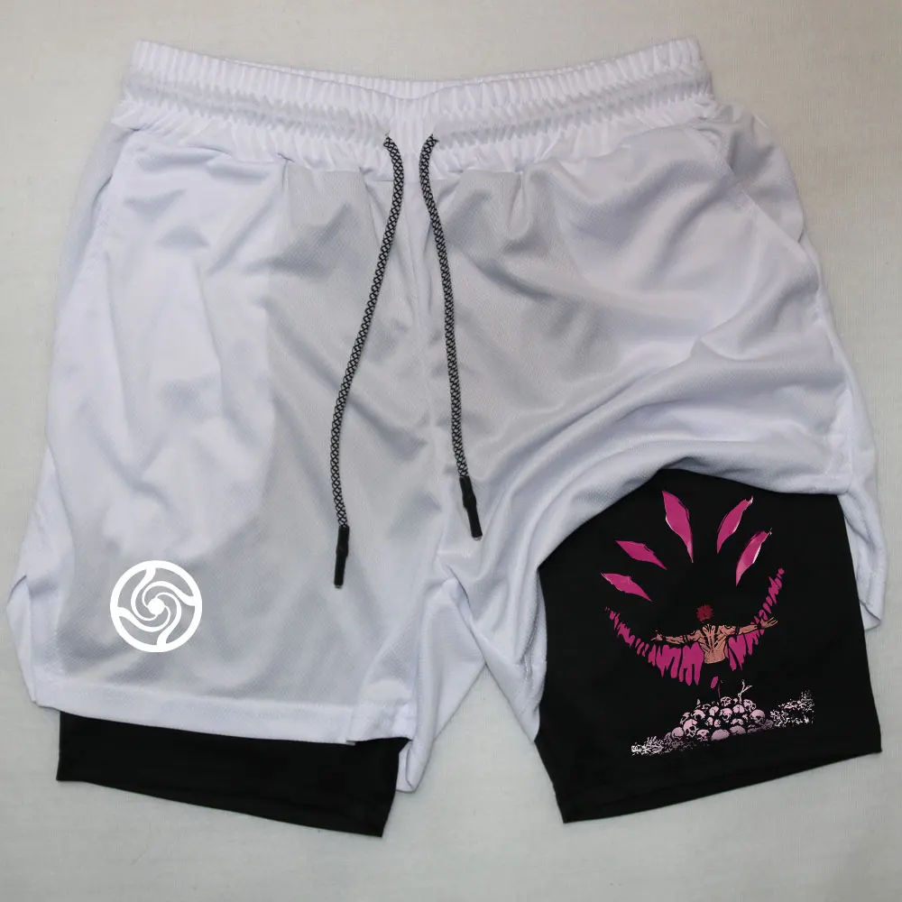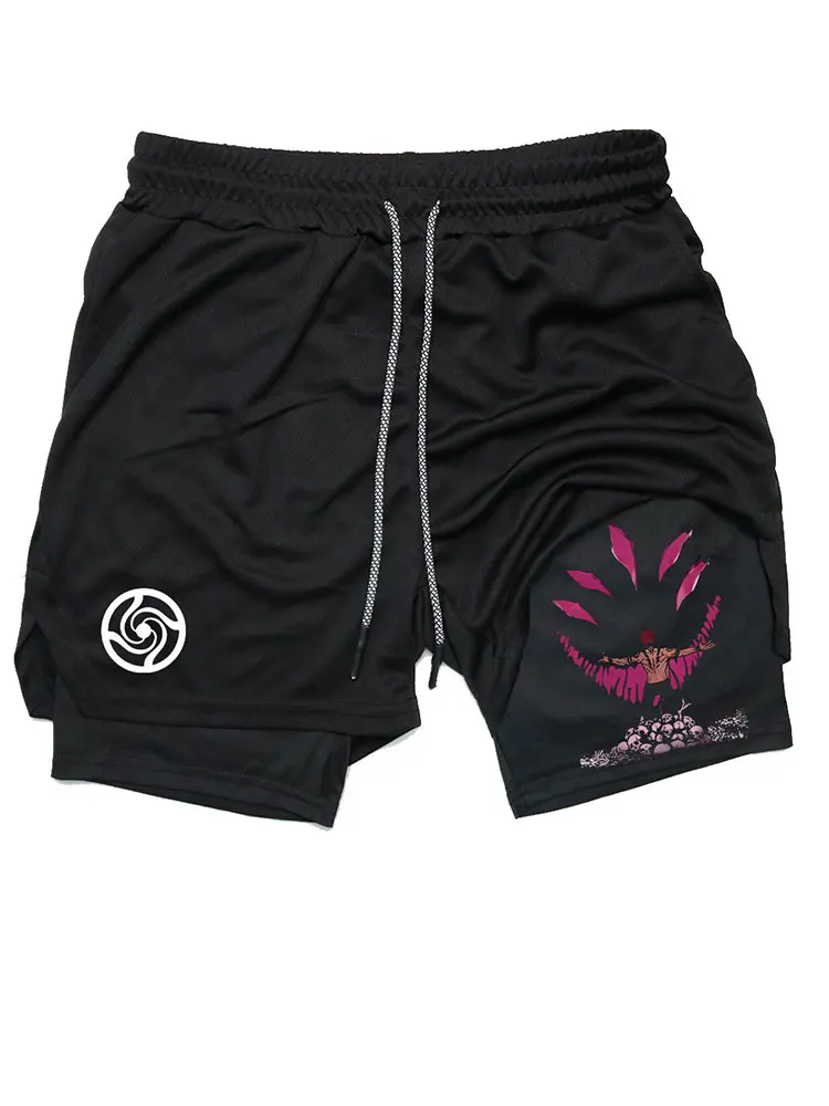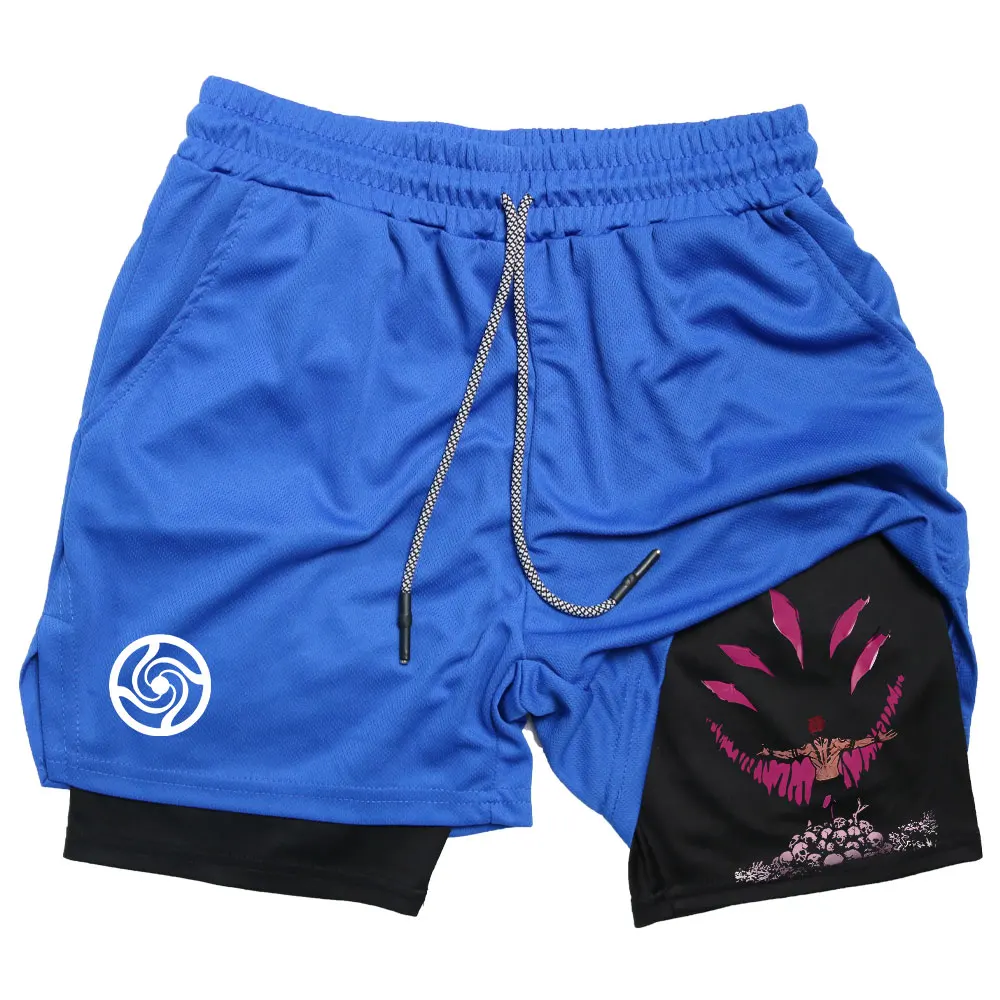 Men GYM 2 In 1 Compression Shorts Summer Anime Print Training Workout Male Fitne