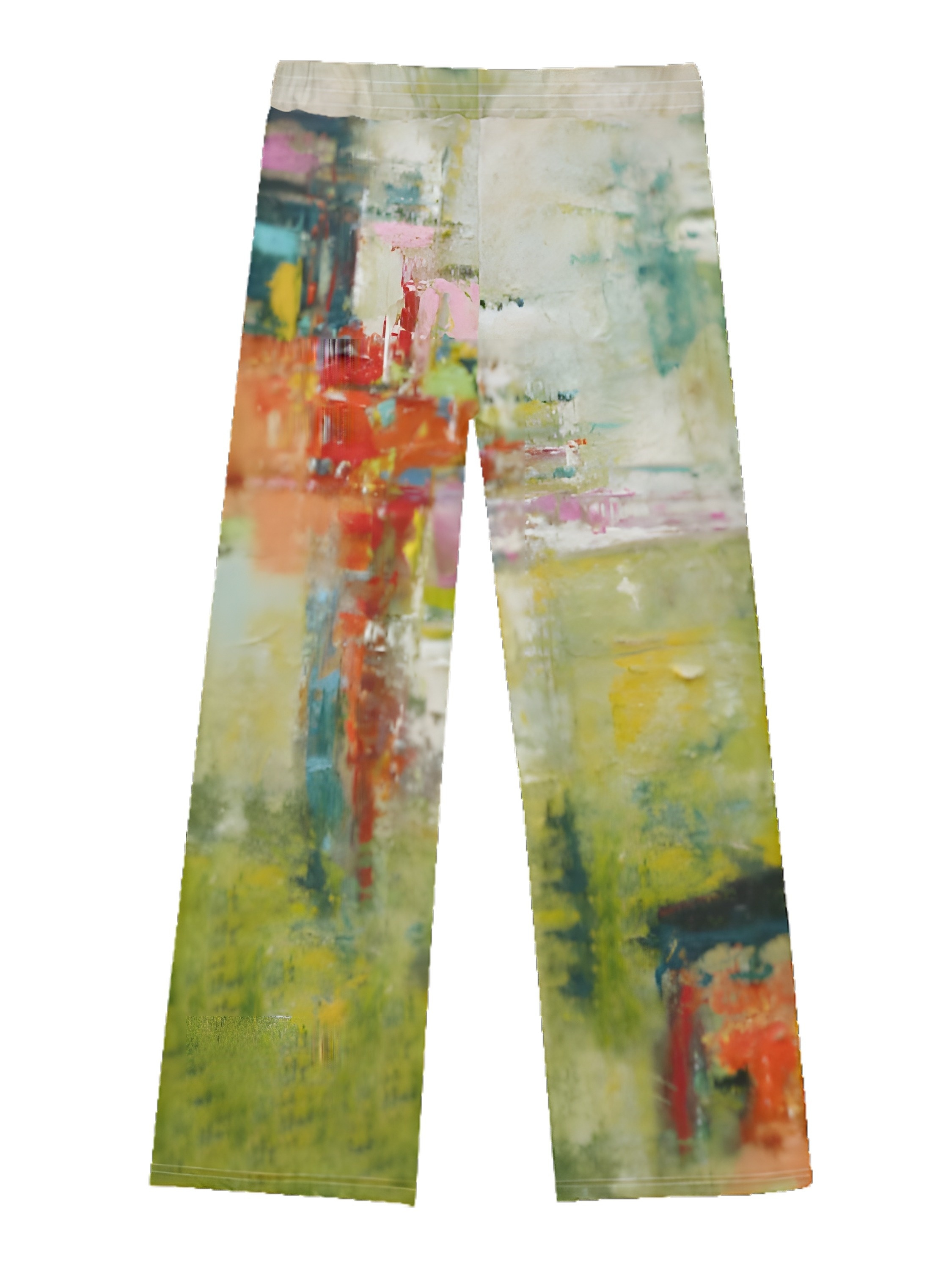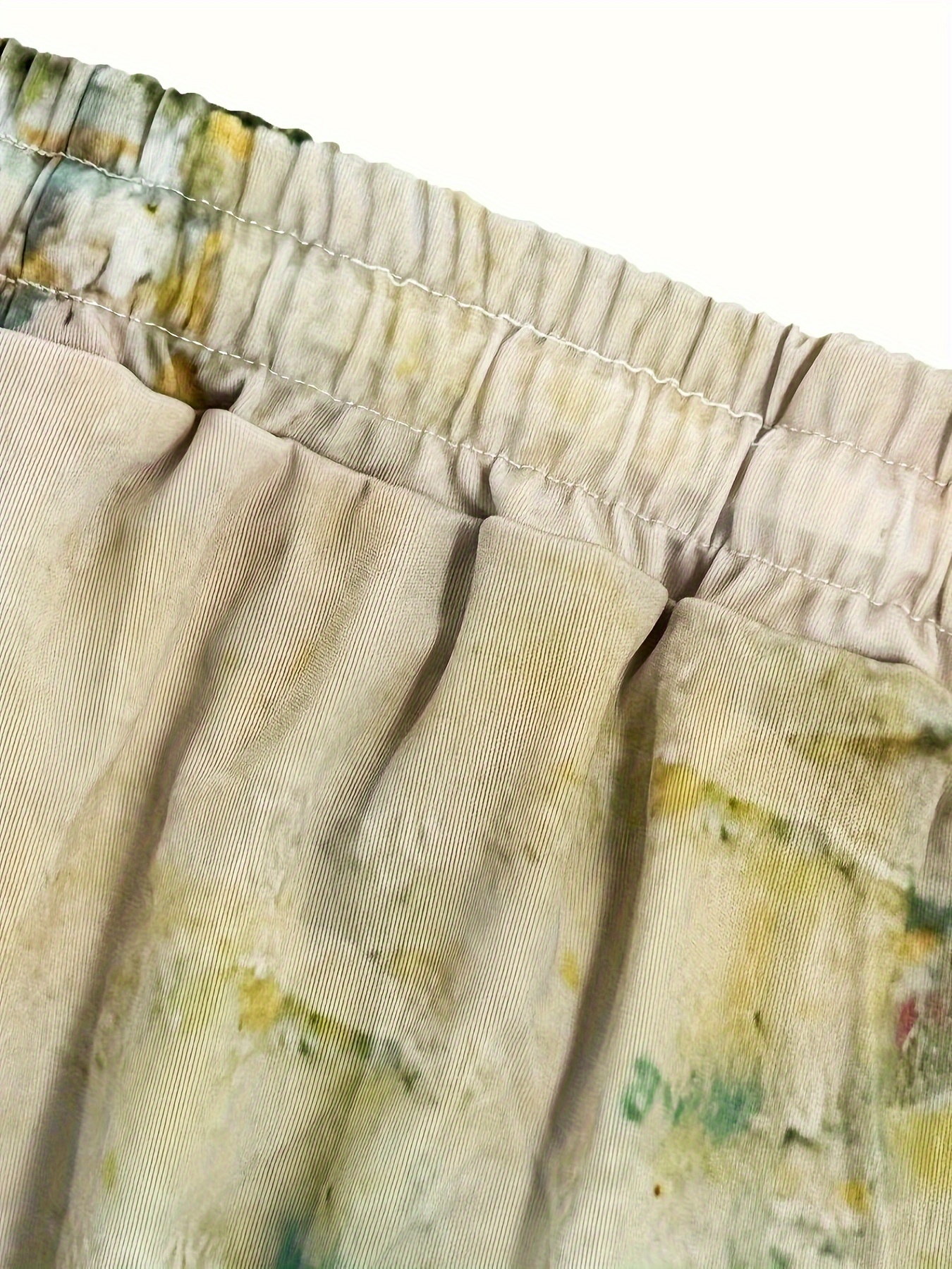 Men's Beach Pants - Wide Leg, Drawstring, Trendy Oli Painting Pattern, Casual, B