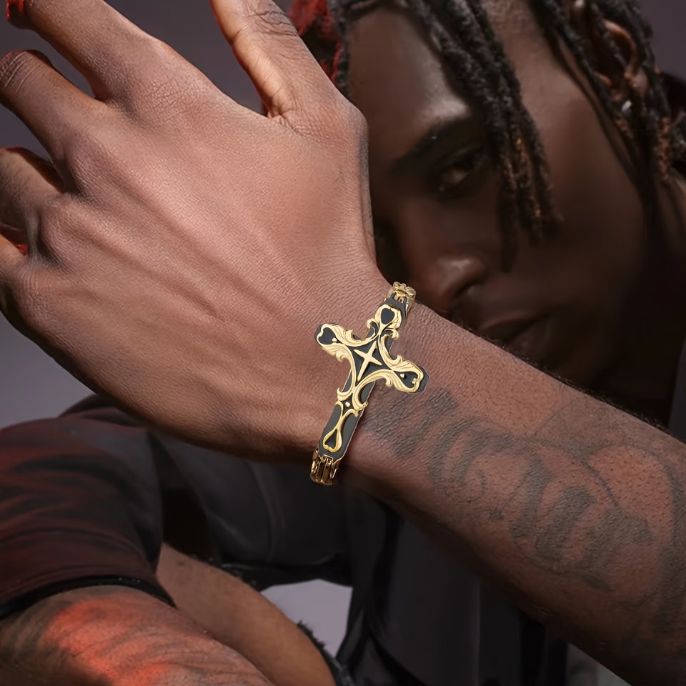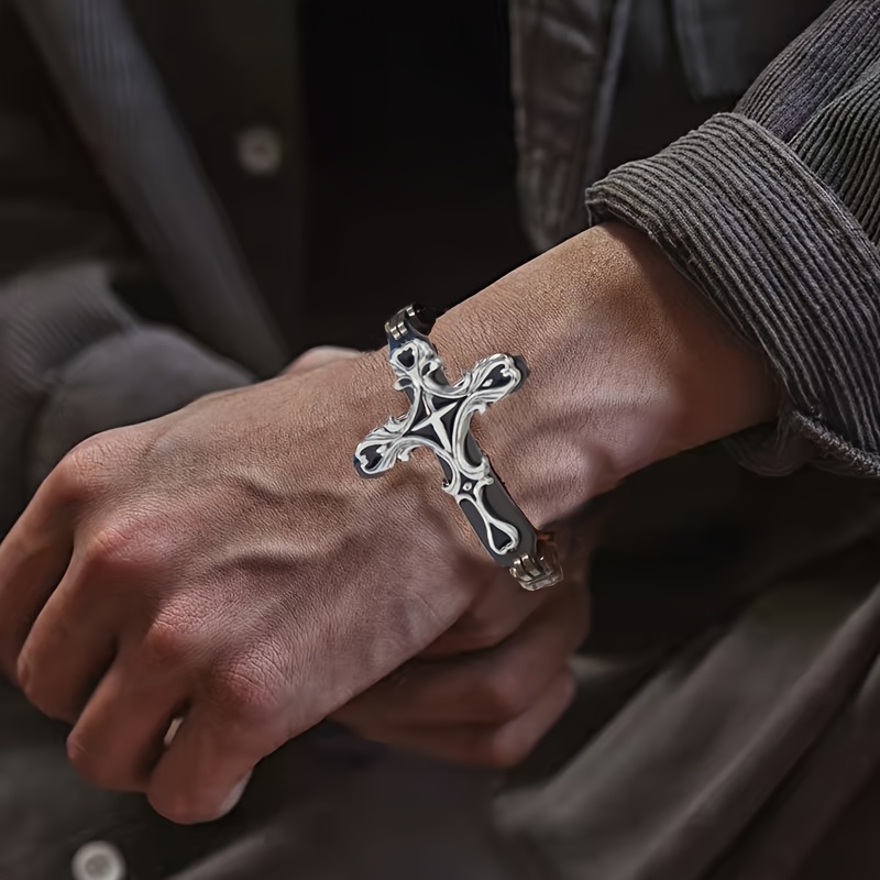 Men's Fashion Stainless Steel Cross Bracelet with 8mm Thick Imperial Chain - Non