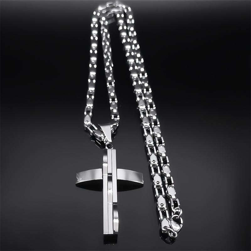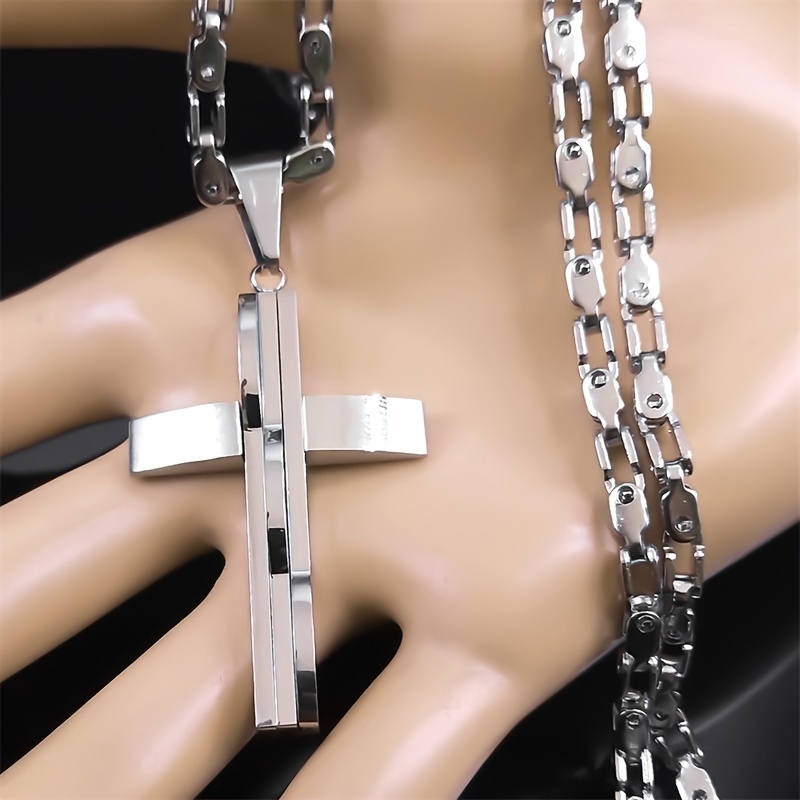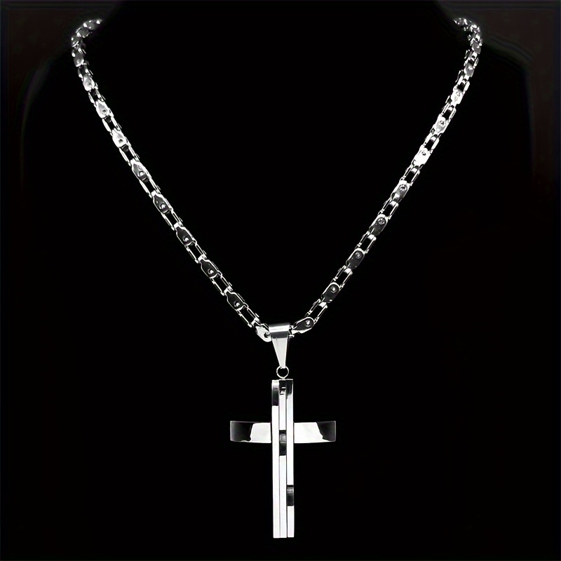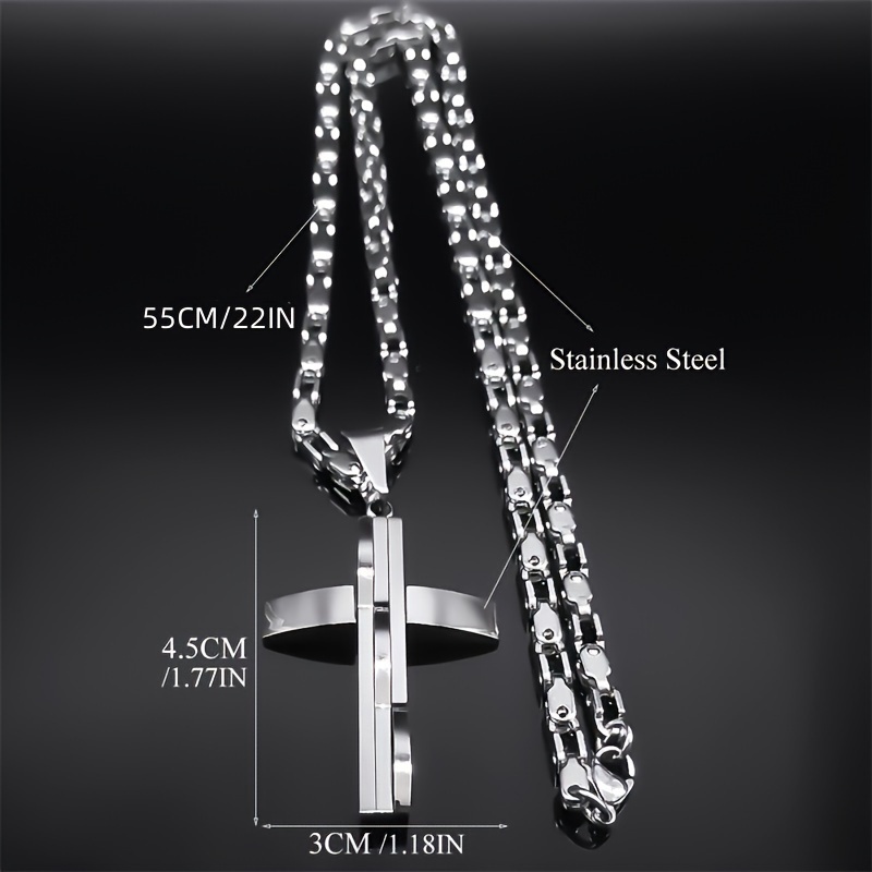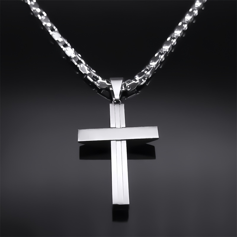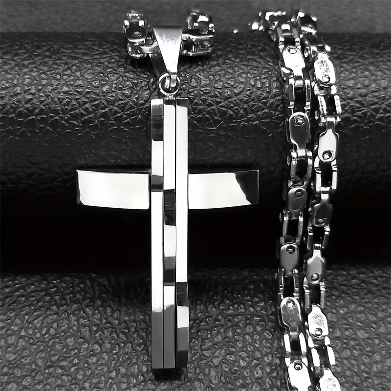 Men's Fashion Stainless Steel Cross Pendant Necklace, 18K Gold Plated, Modern An