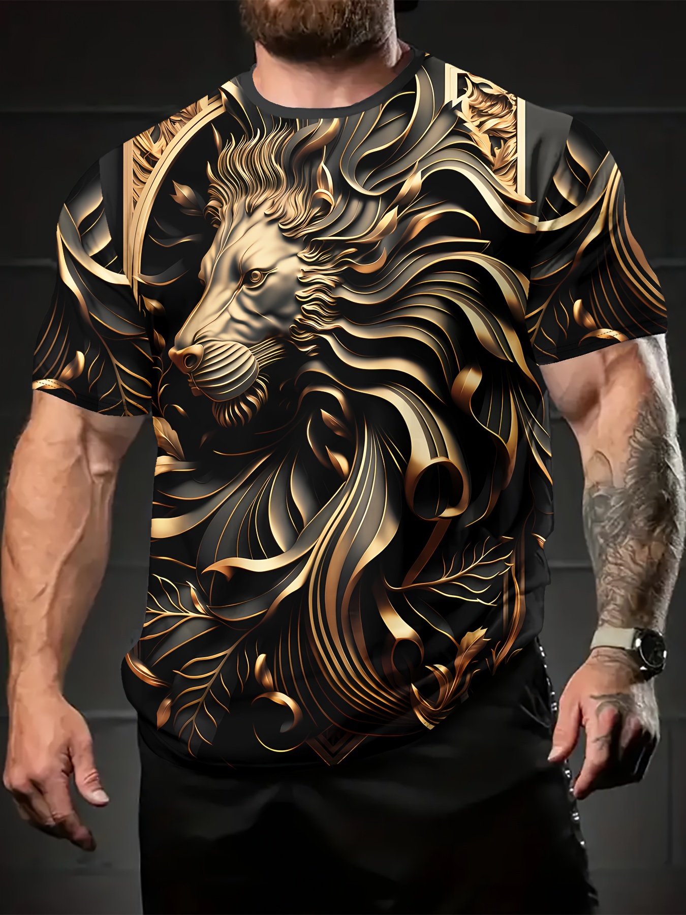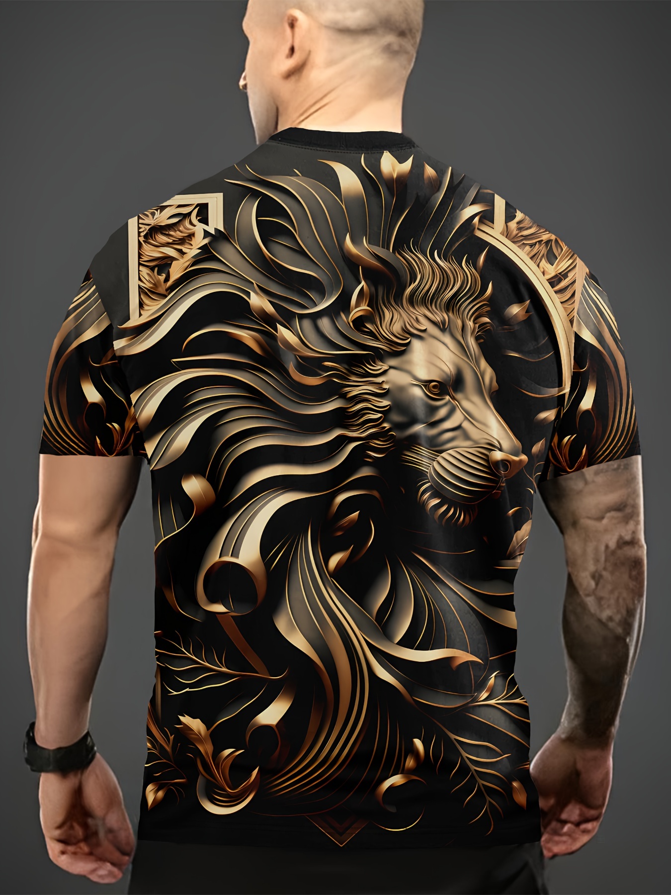 Men's Summer Fashion Golden Lion Print T-Shirt - Cool & Versatile Casual Short S