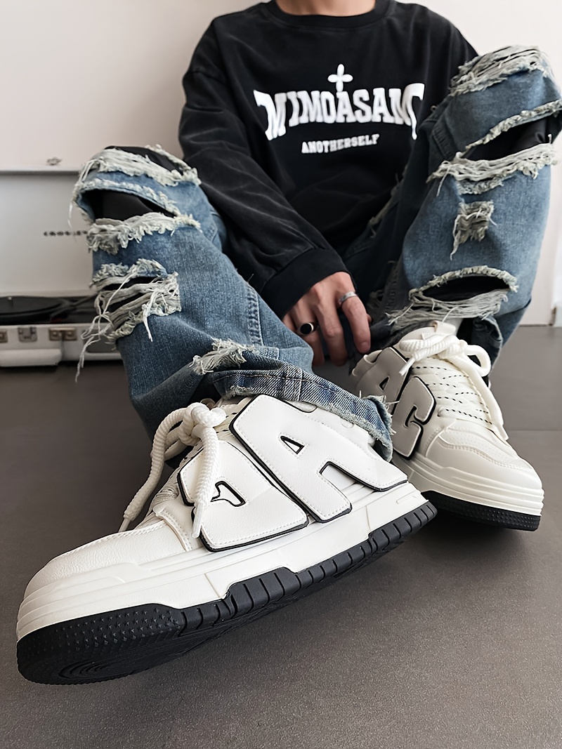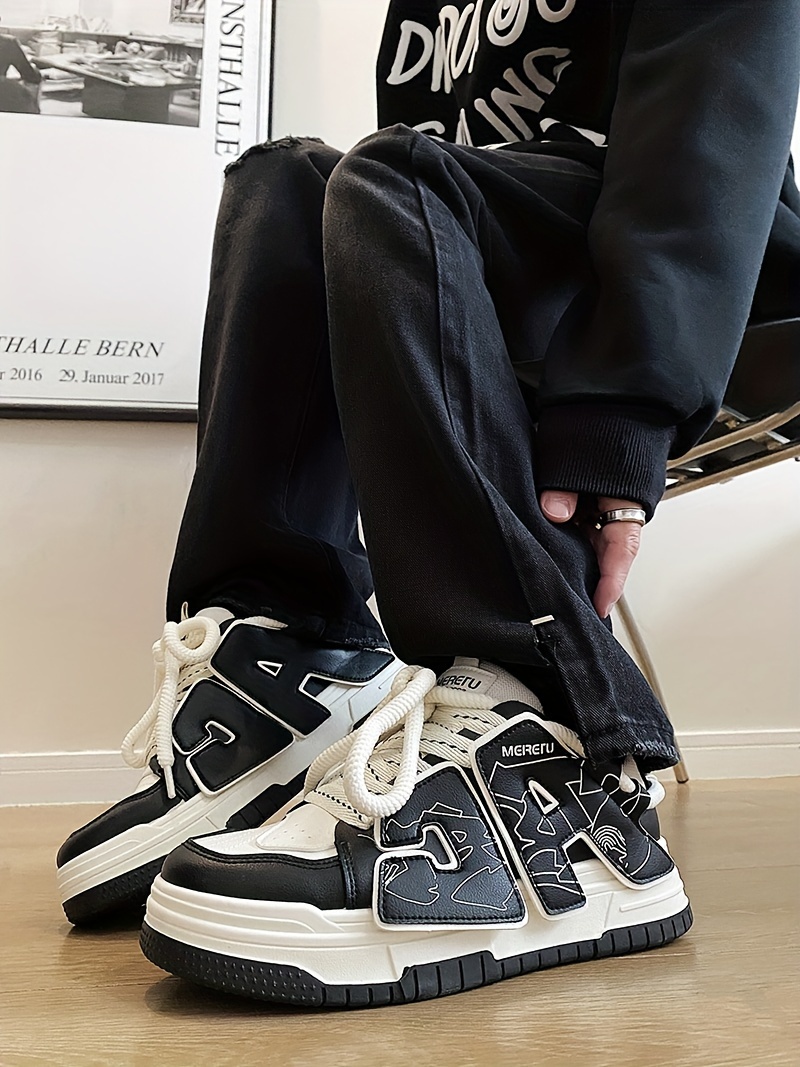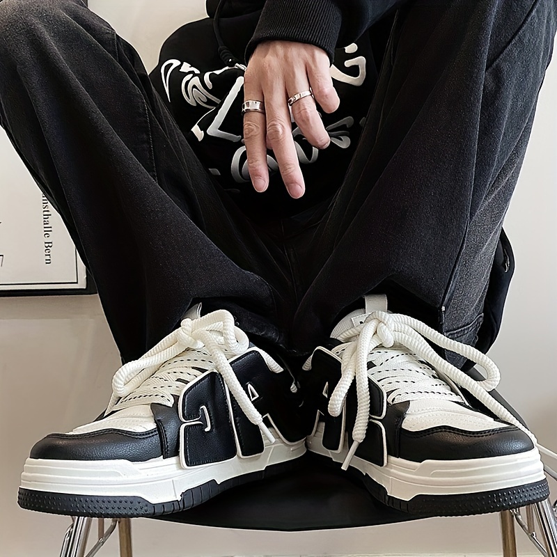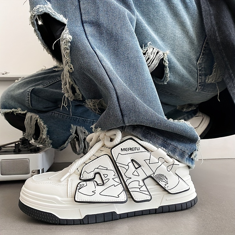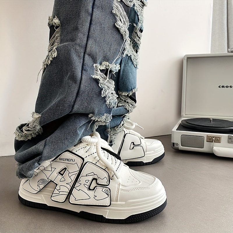Men's Trendy Skate Shoes - Breathable, Non-Slip, Lace-Up Sneakers with Alphabet