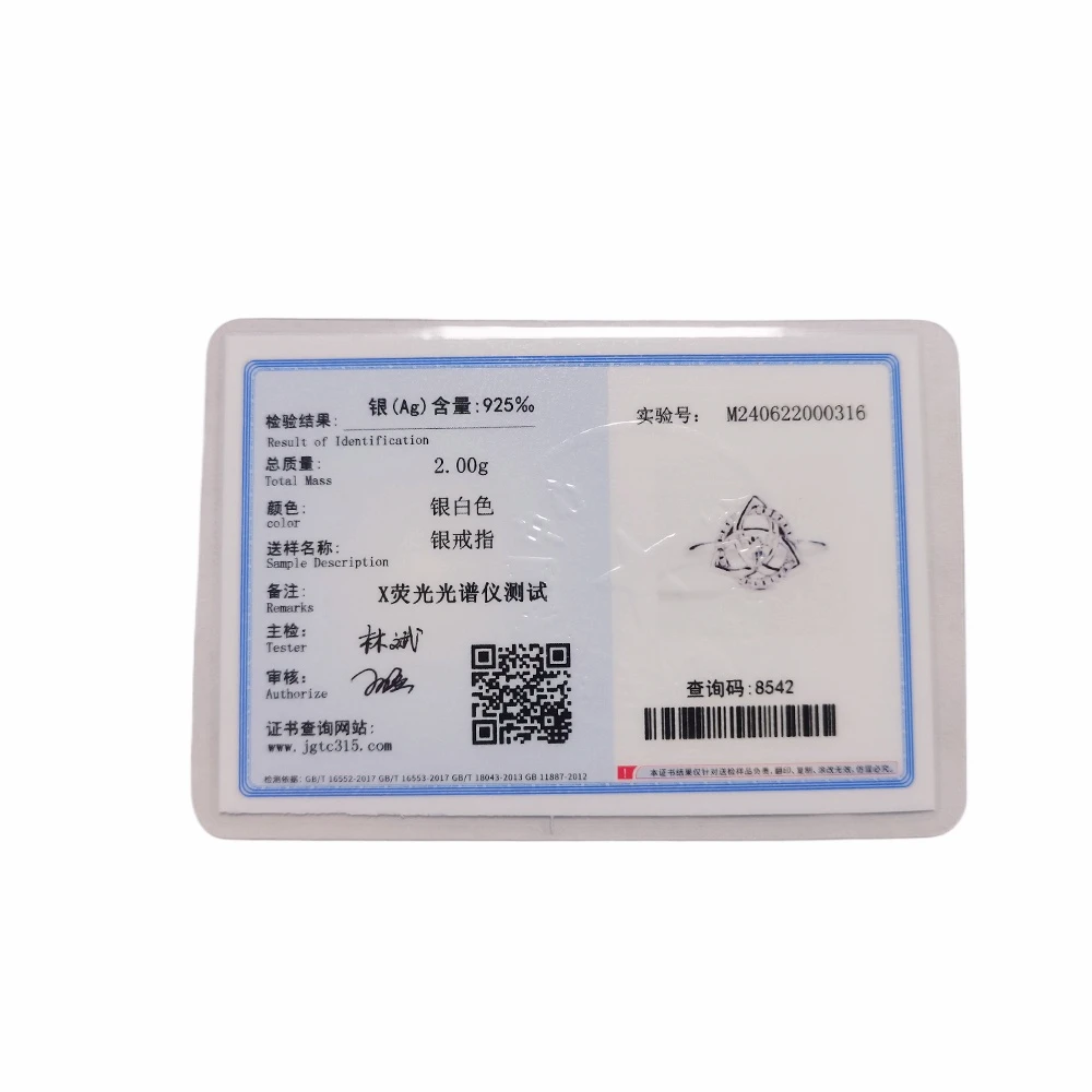 Certificate Number: 925 Sterling Silver