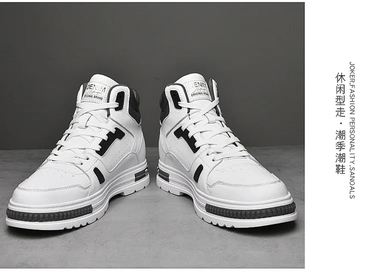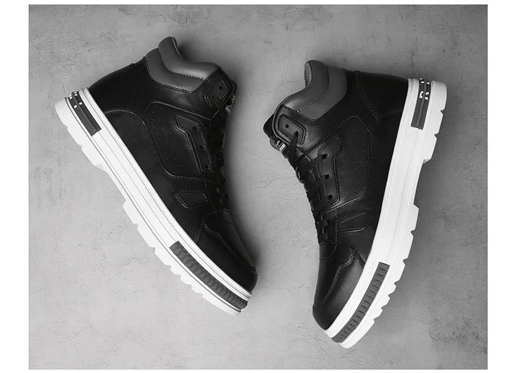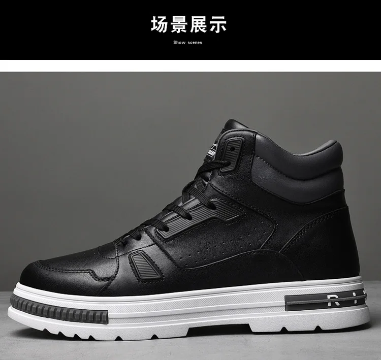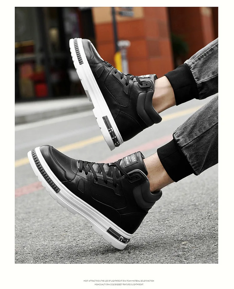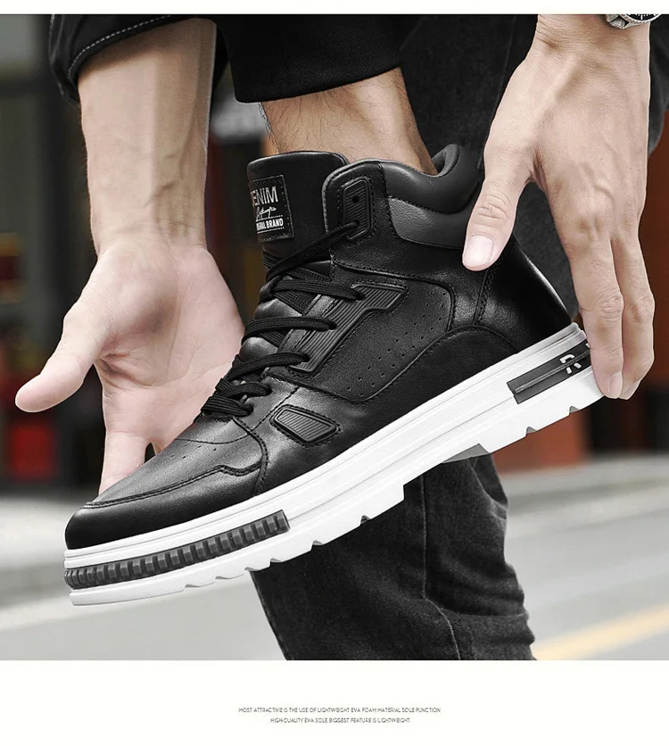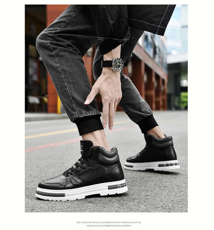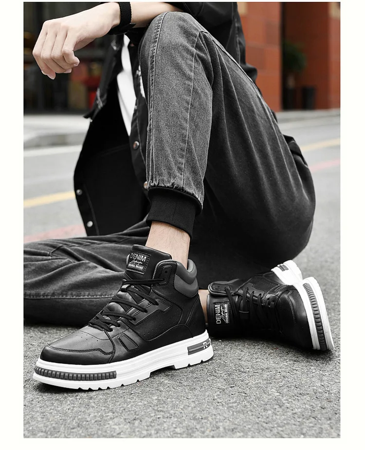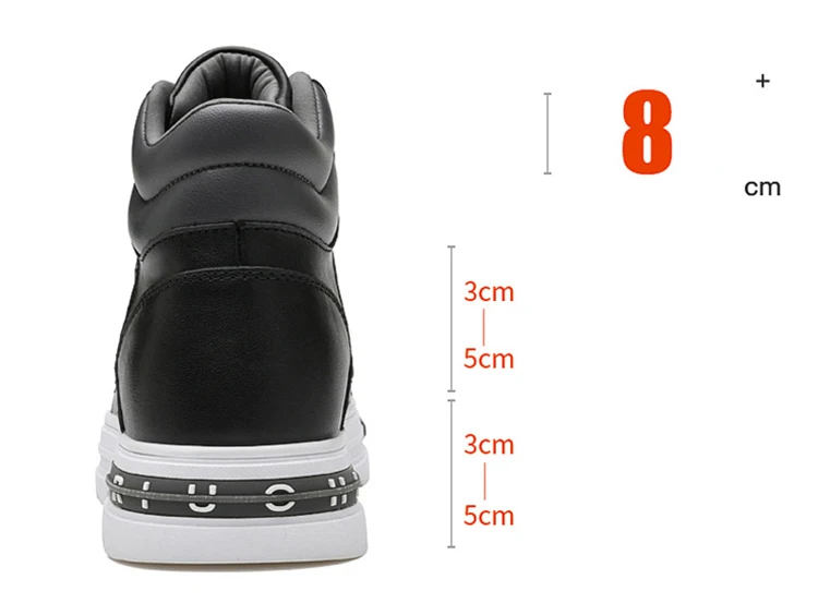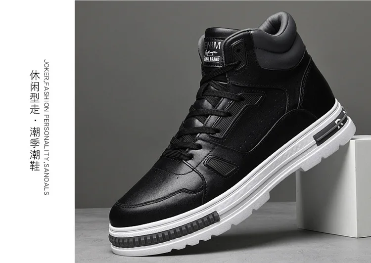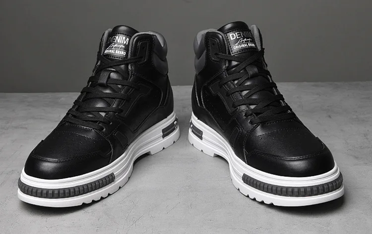New Height Increasing 6/8CM Men's Leather Boots Breathable Casual Shoes Athletic