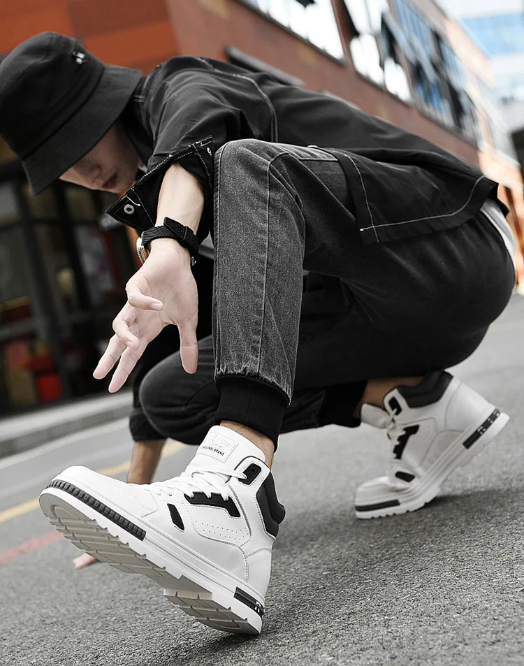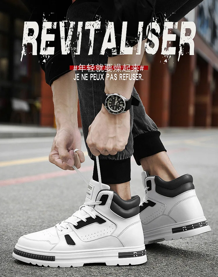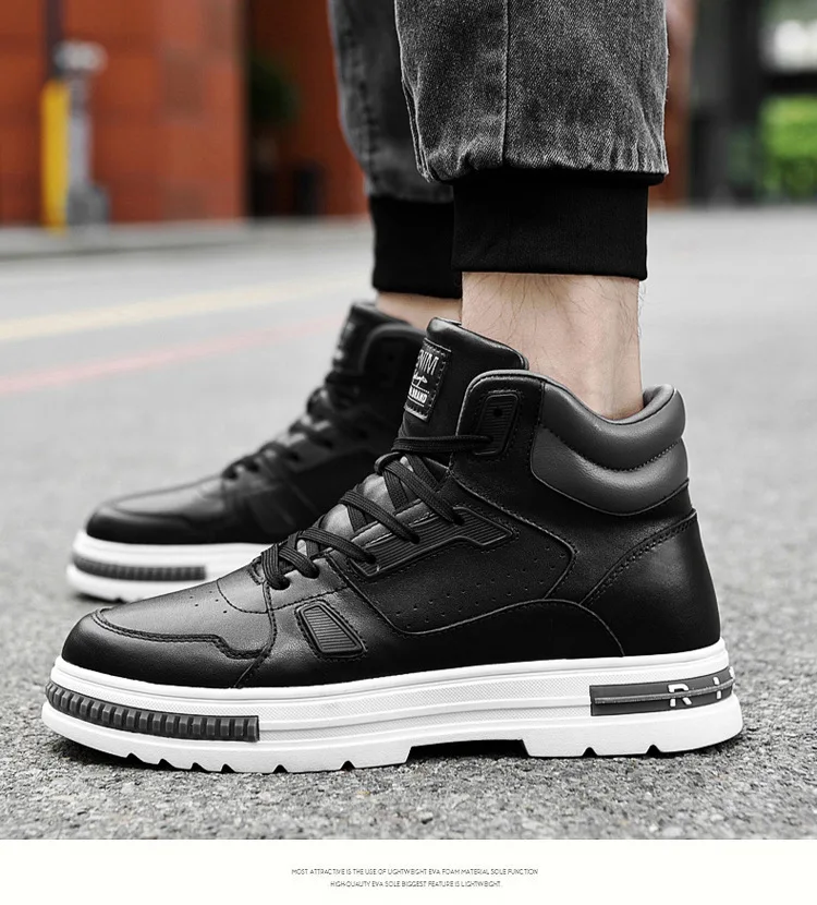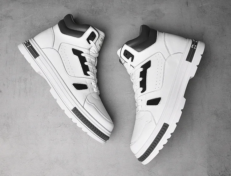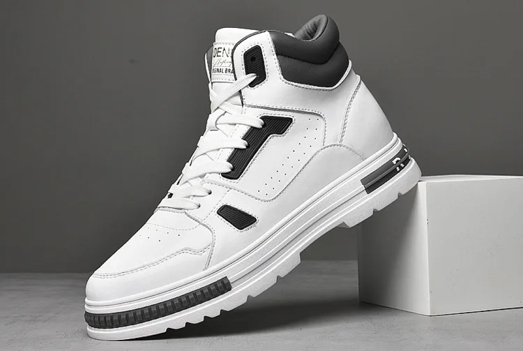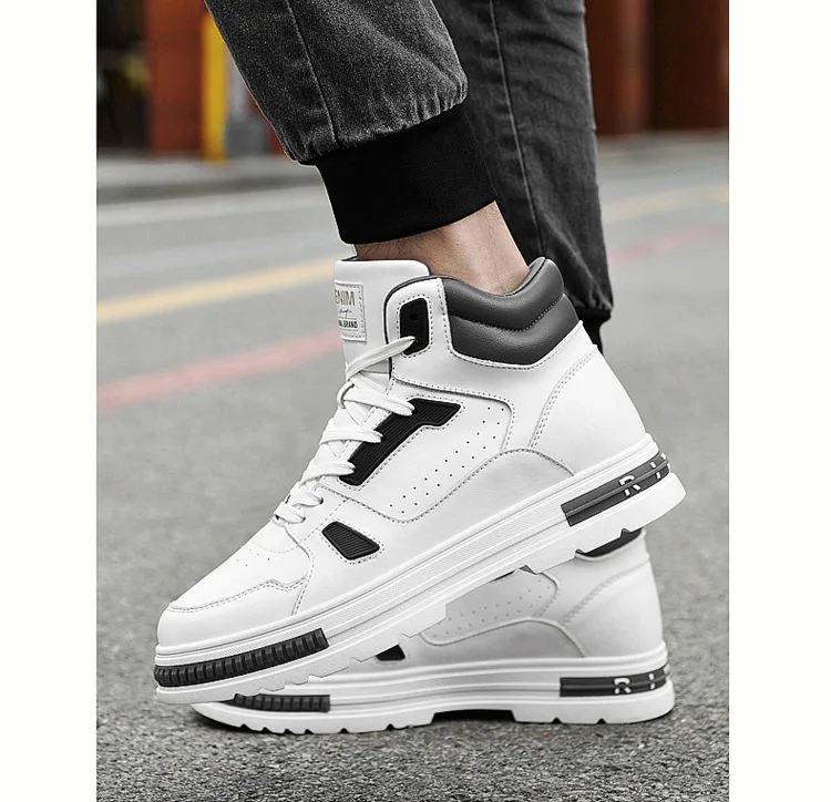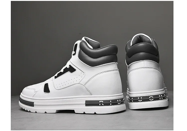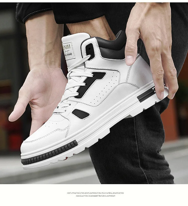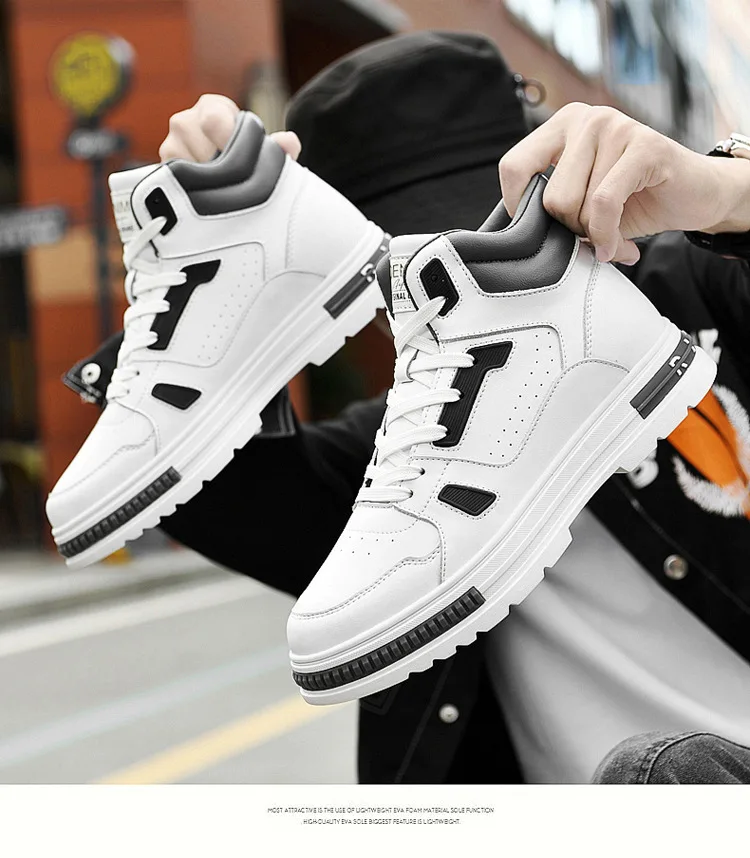 New Height Increasing 6/8CM Men's Leather Boots Breathable Casual Shoes Athletic