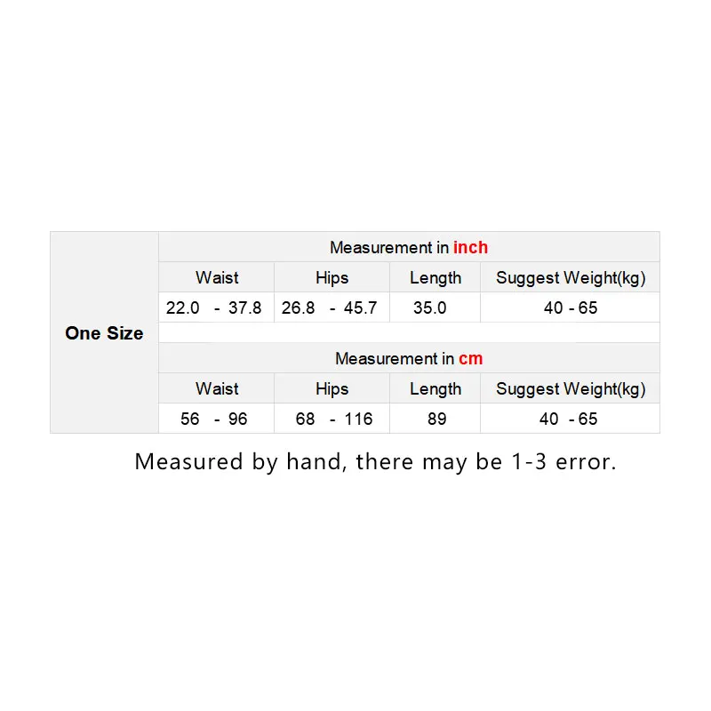 Fabric: Glossy cloth, one size fits all, the recommended weight is 80-130 kg, pants length is about 89cm, waist circumference is about 56-96cm, hip circumference is about 68-116cm