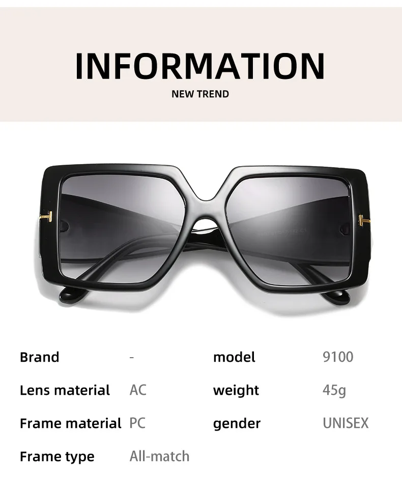Oversized Square Gradient Sun Glasses Women Luxury Brand Outdoor Design Fashion