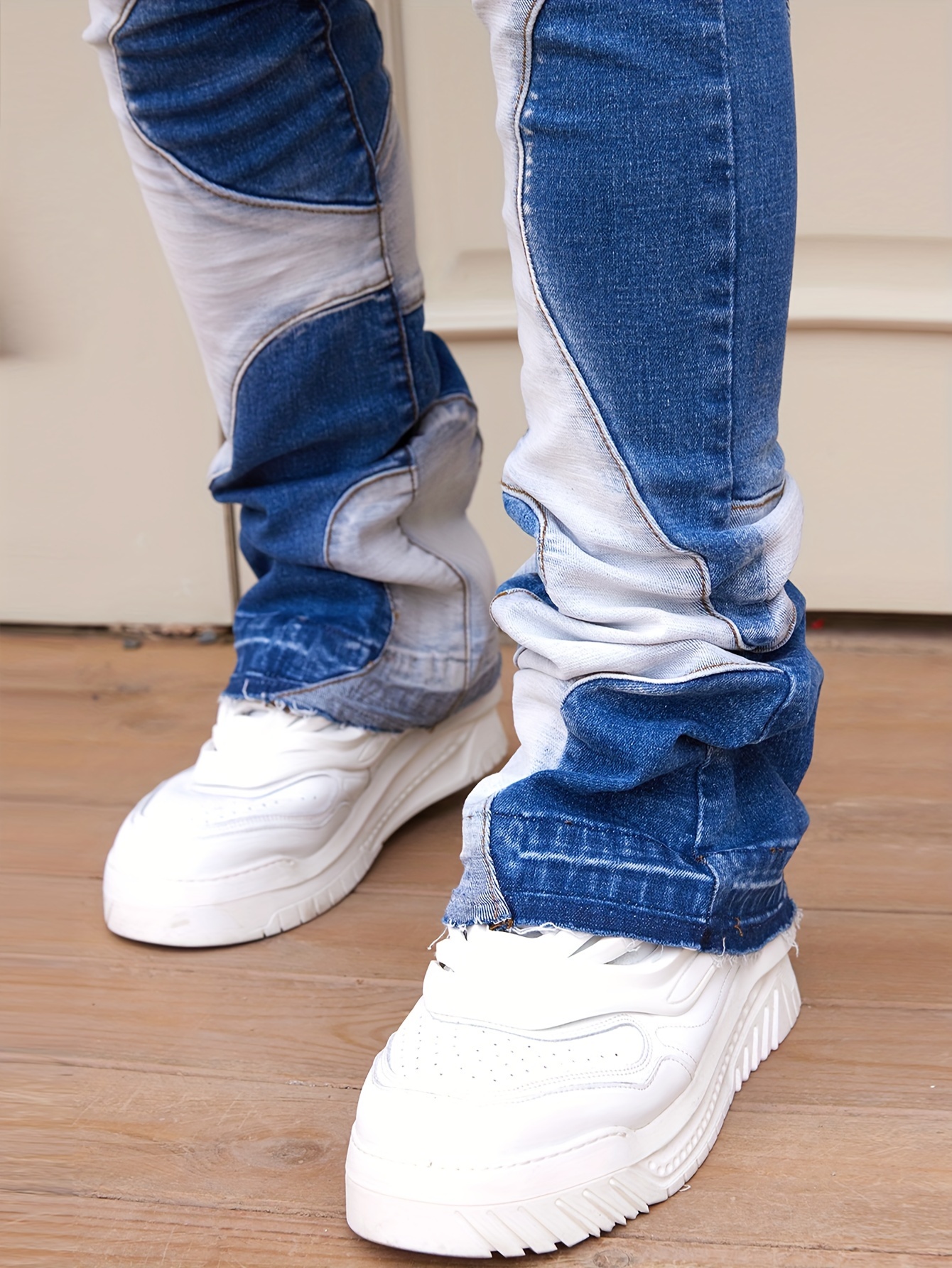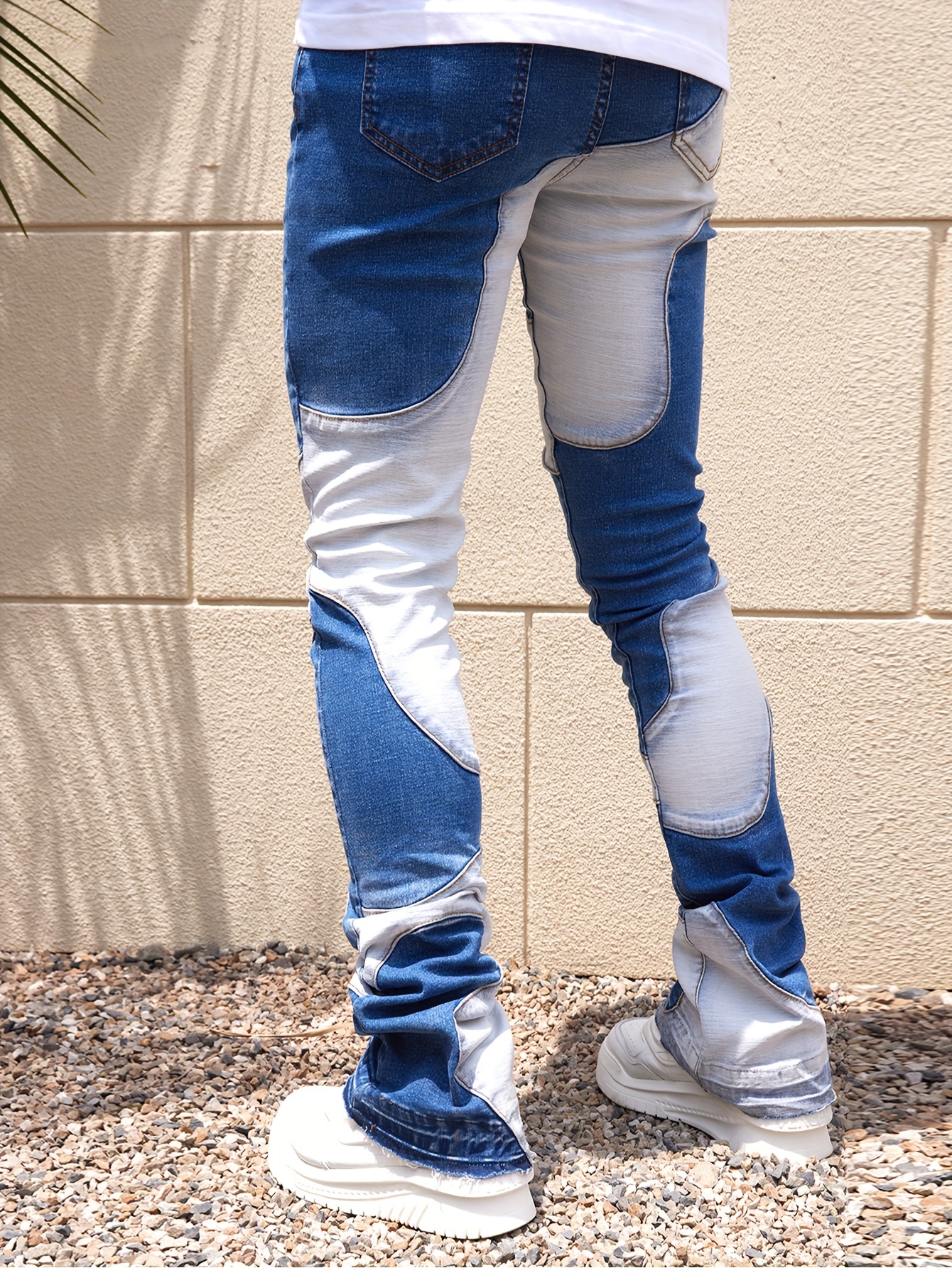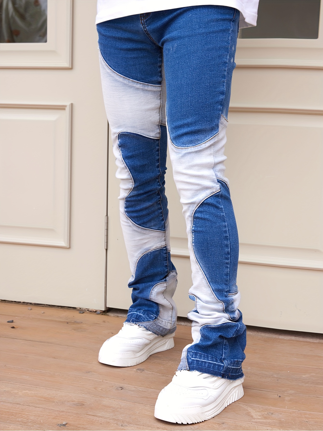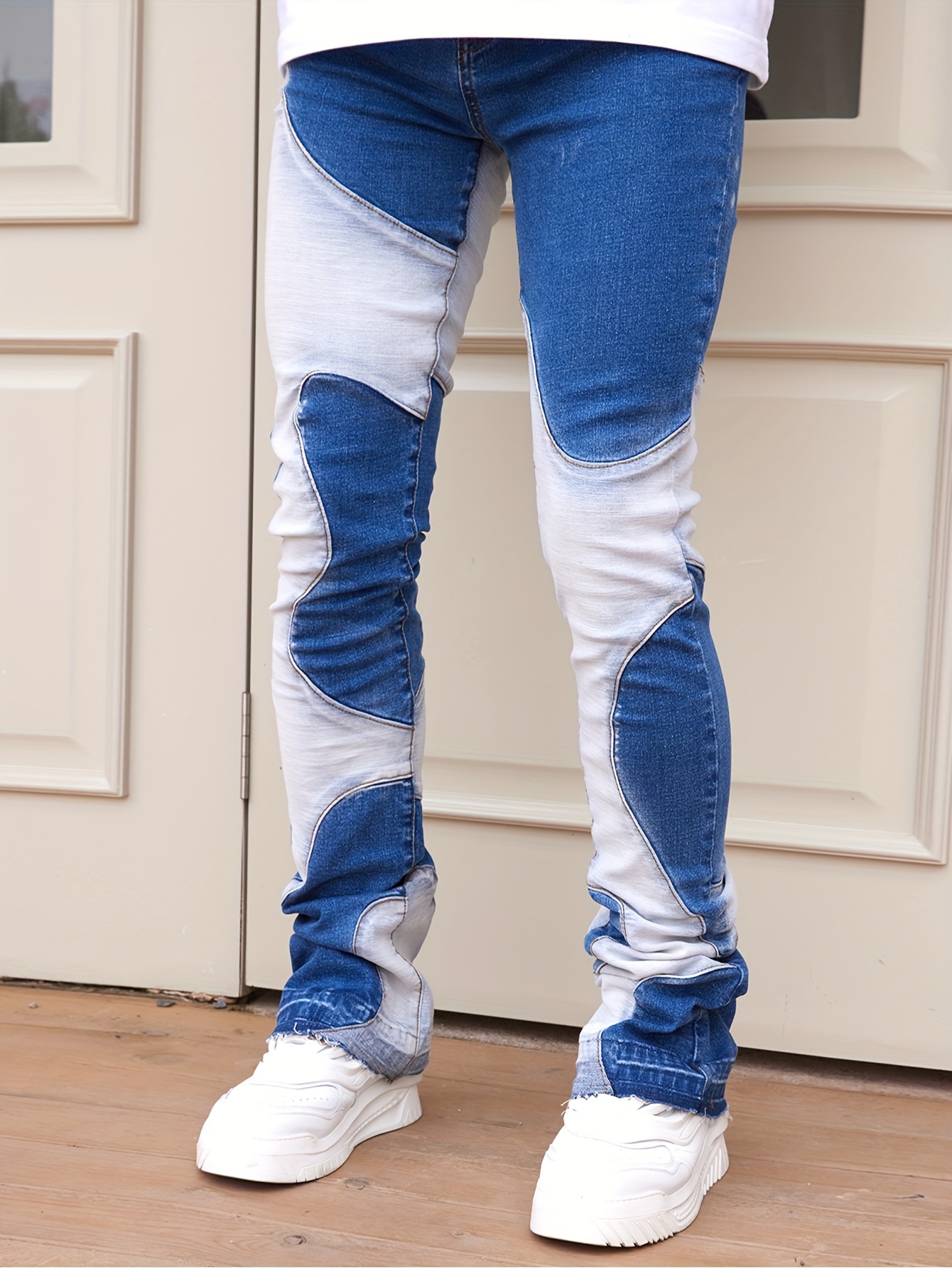 Skinny Fit Colorblock Denim Pants For Men, Stylish Leisure Jeans, Men Clothing