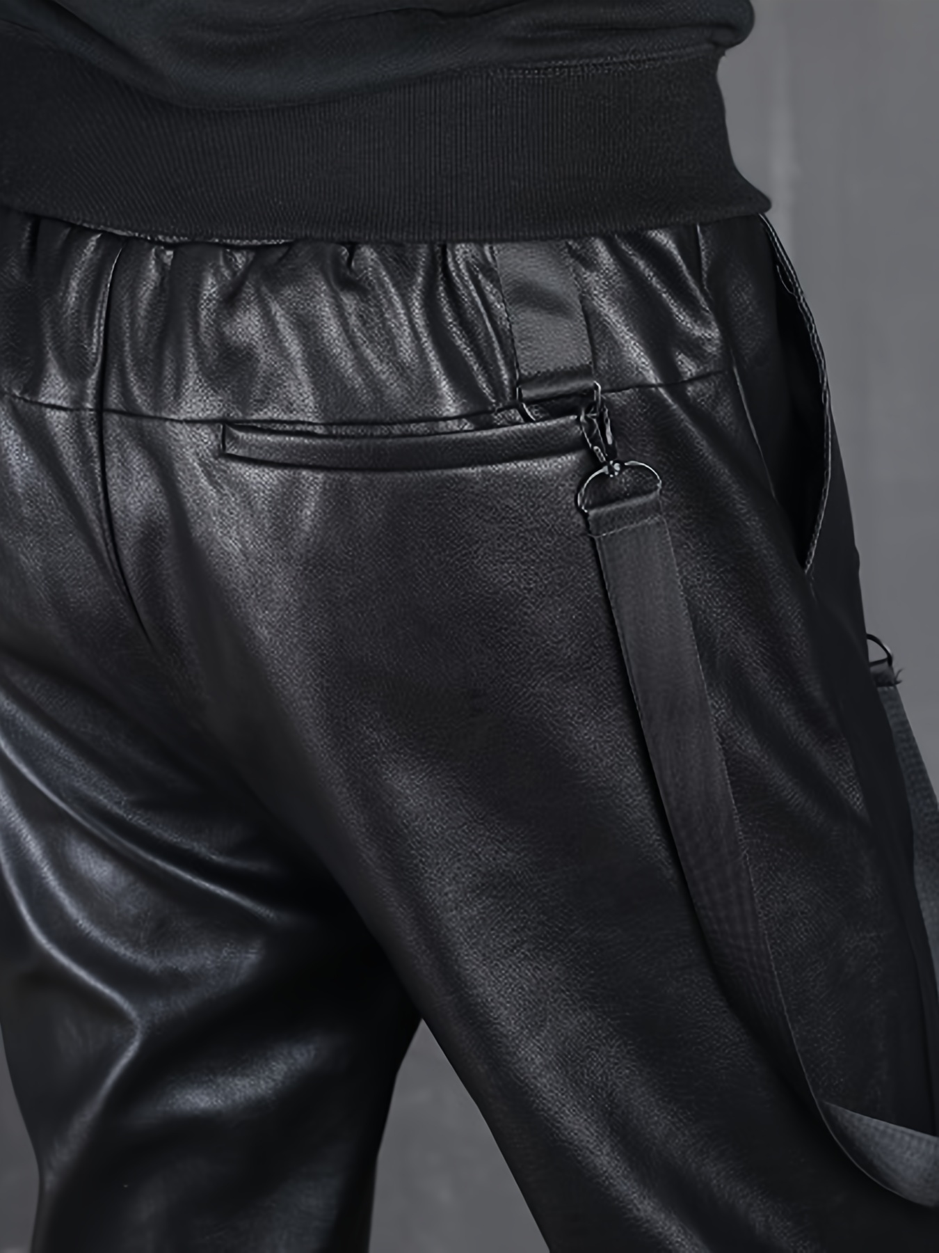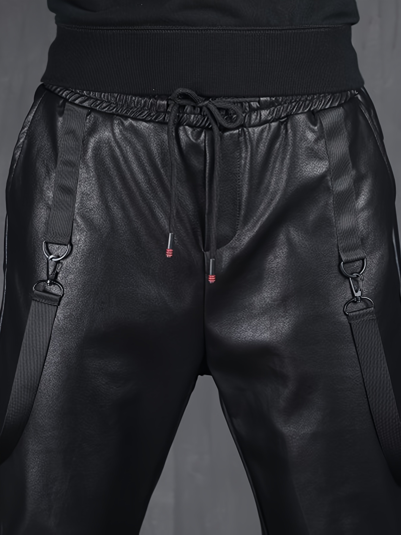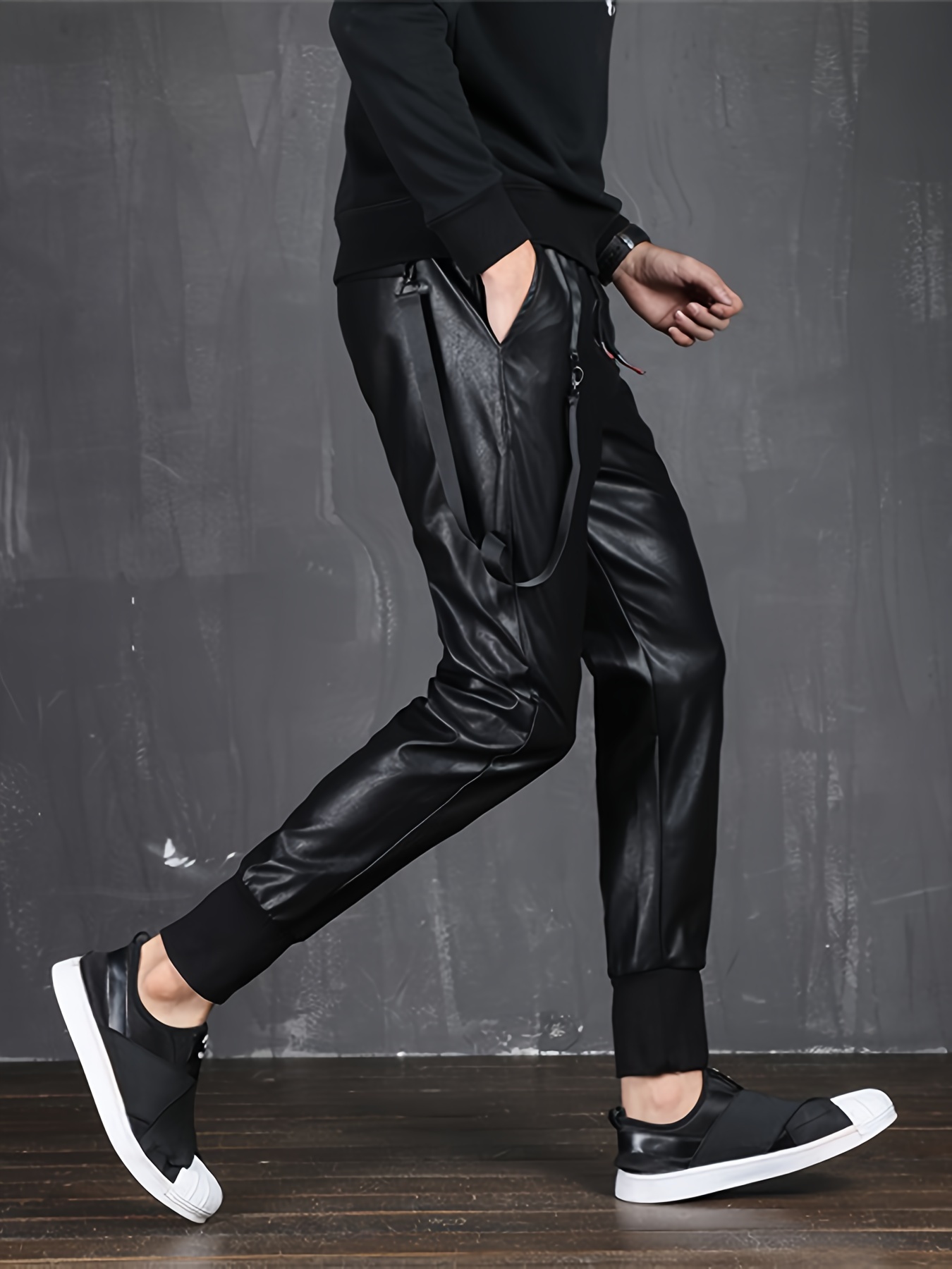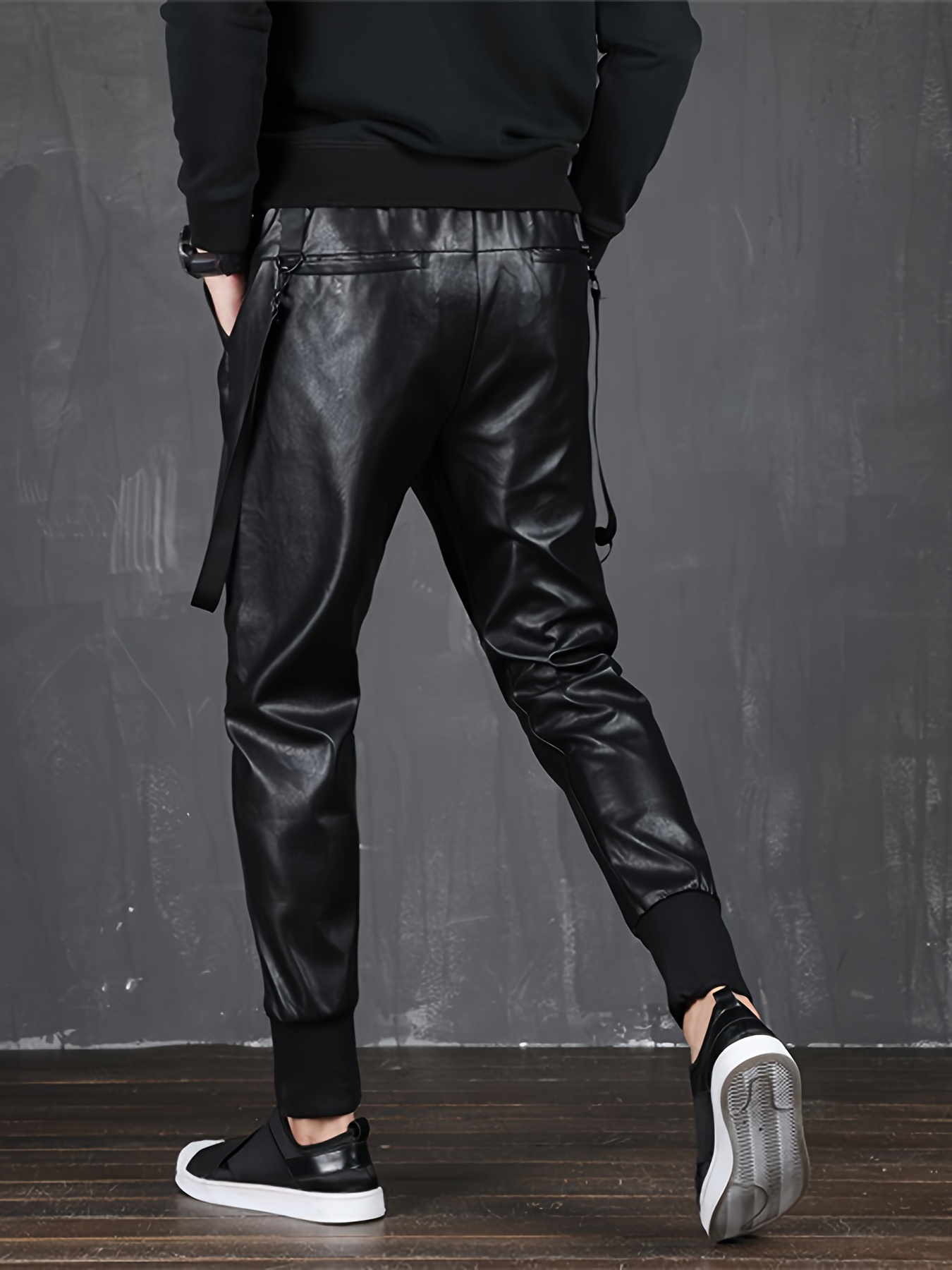 Stylish Faux Leather Joggers - Casual Pants for Men with Elastic Waist, Hip Hop