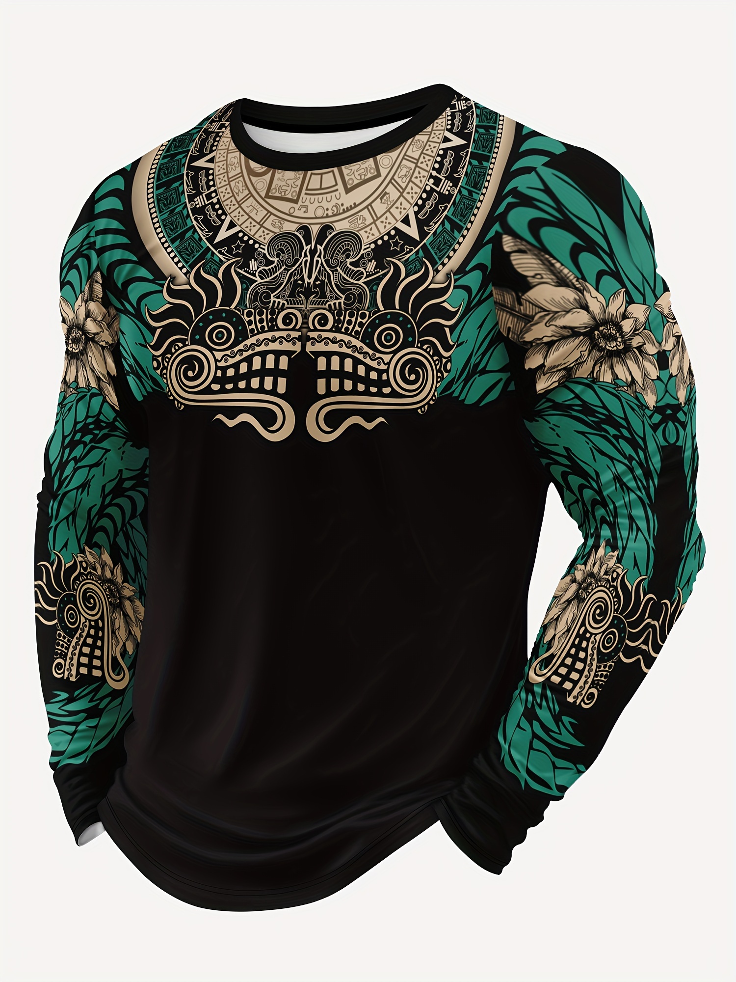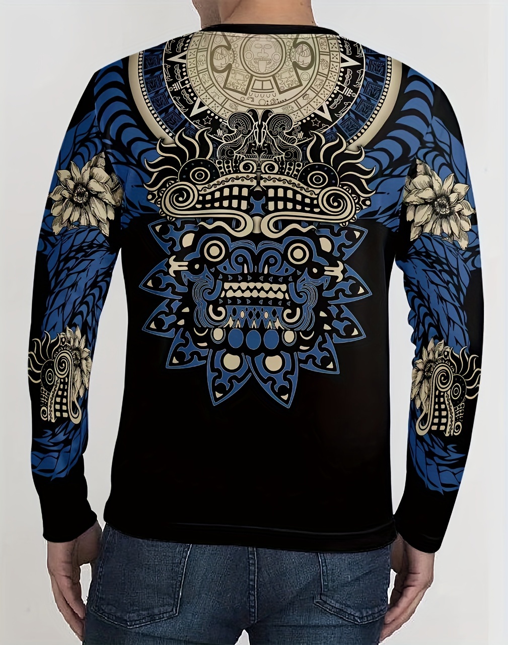 Stylish Men's 3D Print Long Sleeve Casual T-Shirt - Soft Chic Stretch Pullover T