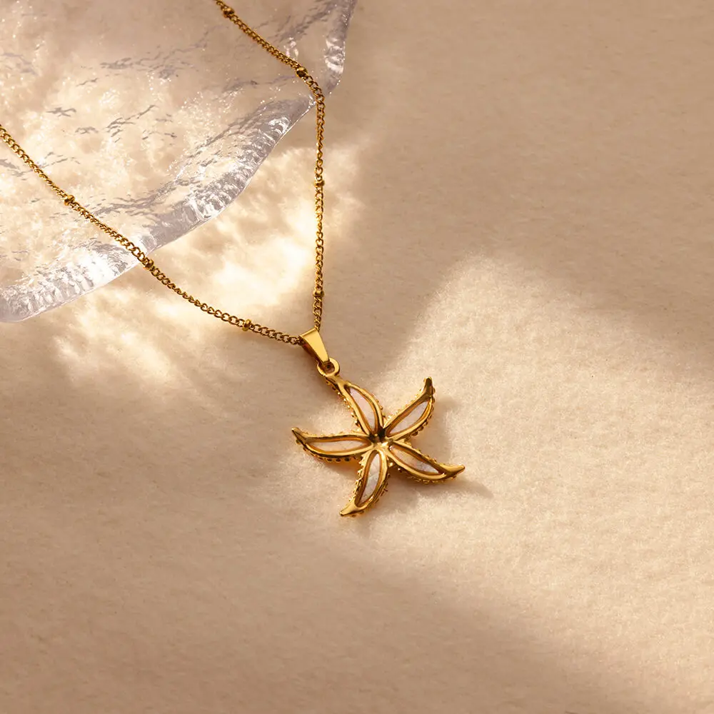 Summer Starfish Pendant Necklace for Women Delicate Beads Chain Necklaces Girls