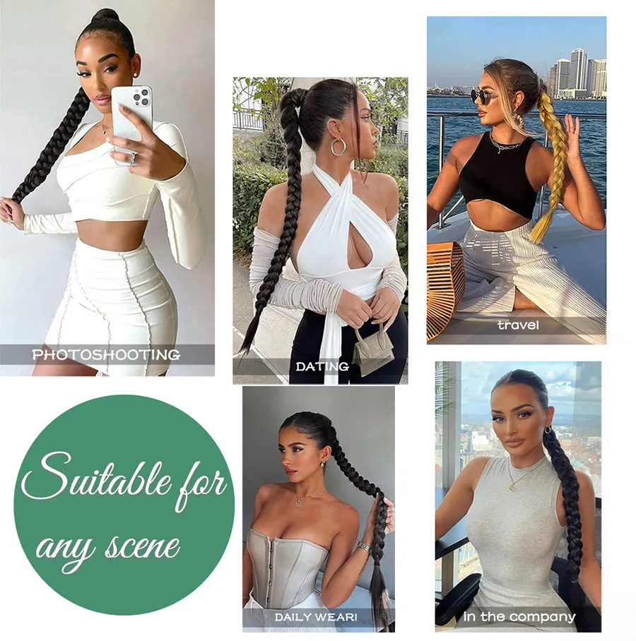 Synthetic Hairpiece Braided Braids: Synthetic Boxing Braids Wrap Around Hair Ponytail