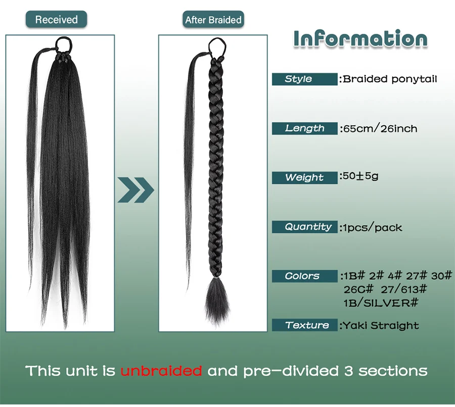 Synthetic Ponytail Braided Hair Extensions: Long Black Hairpiece PonyTail