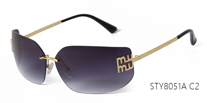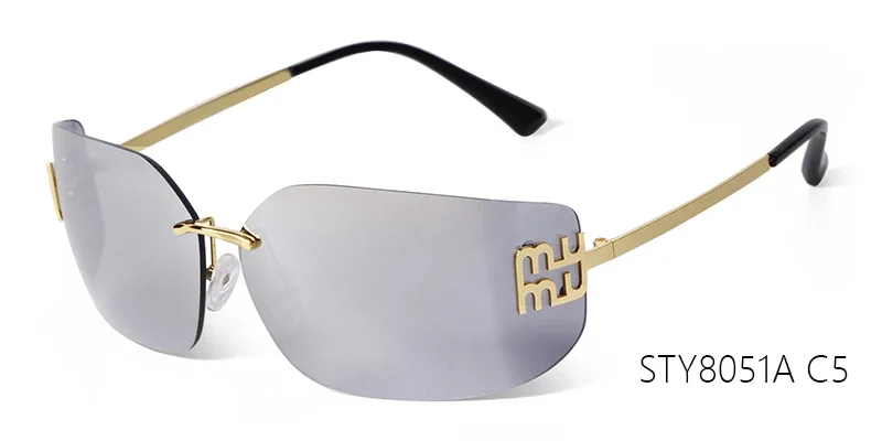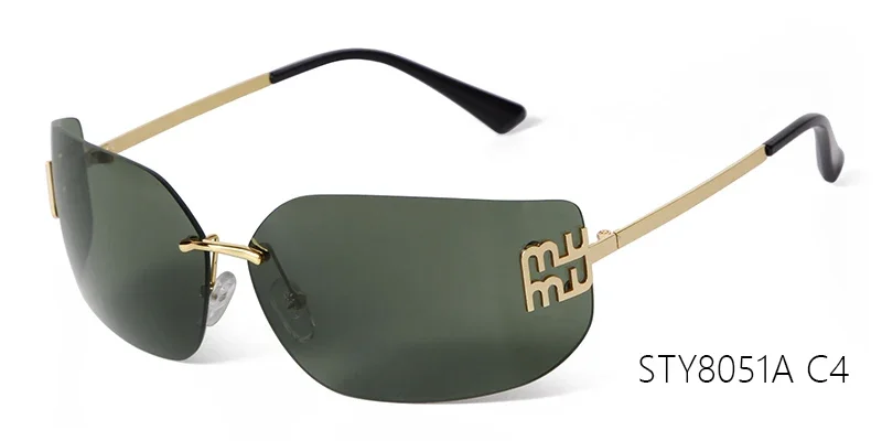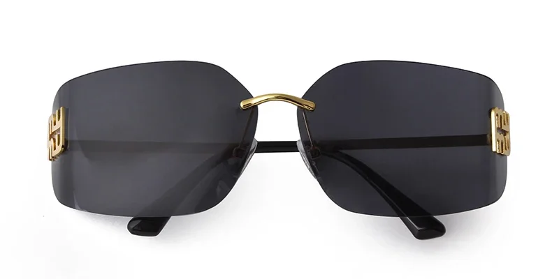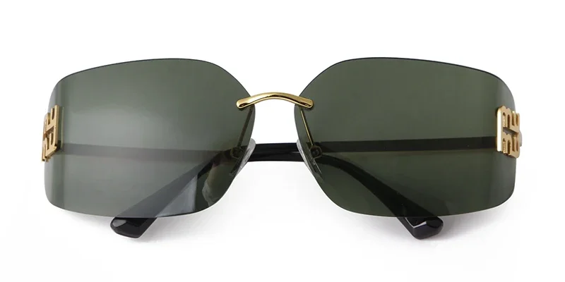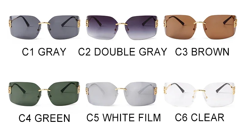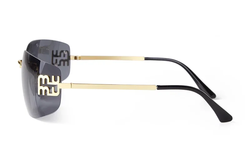 Trend Curved Rimless Film Lens Sunglasses Women Men Brand Design Metal Rivets Gr