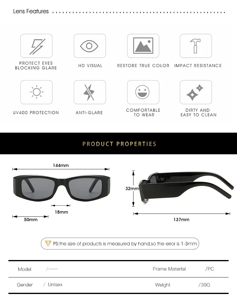 Trendy Rectangle Sunglasses Men Women Luxury Brand Designer Wide Frame Sun Glass