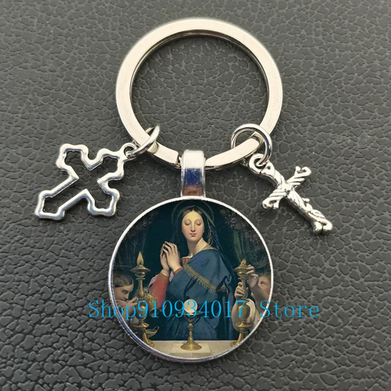 Virgin Mary and Baby Jesus Christian Catholic Jewelry Round Glass Keychain Bless