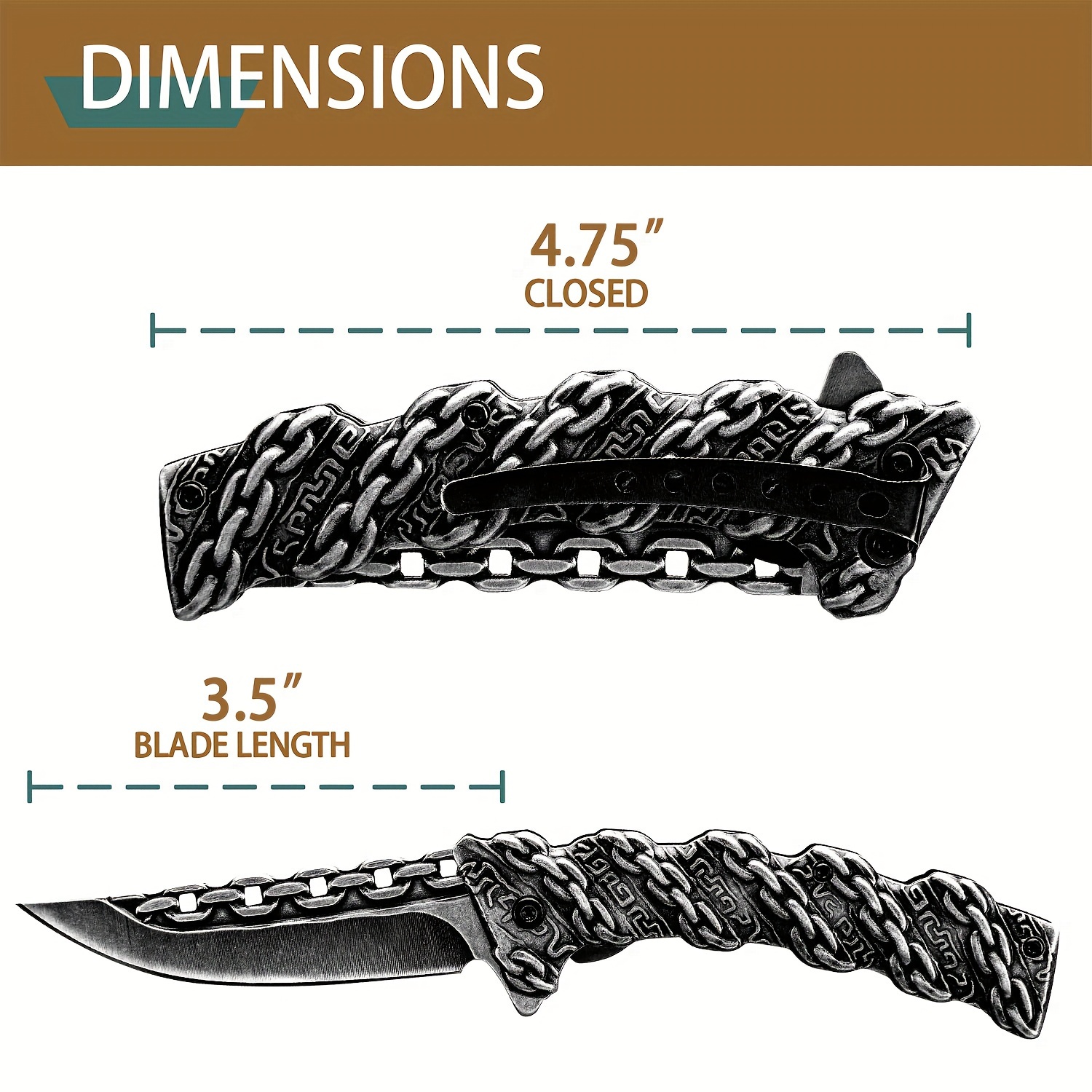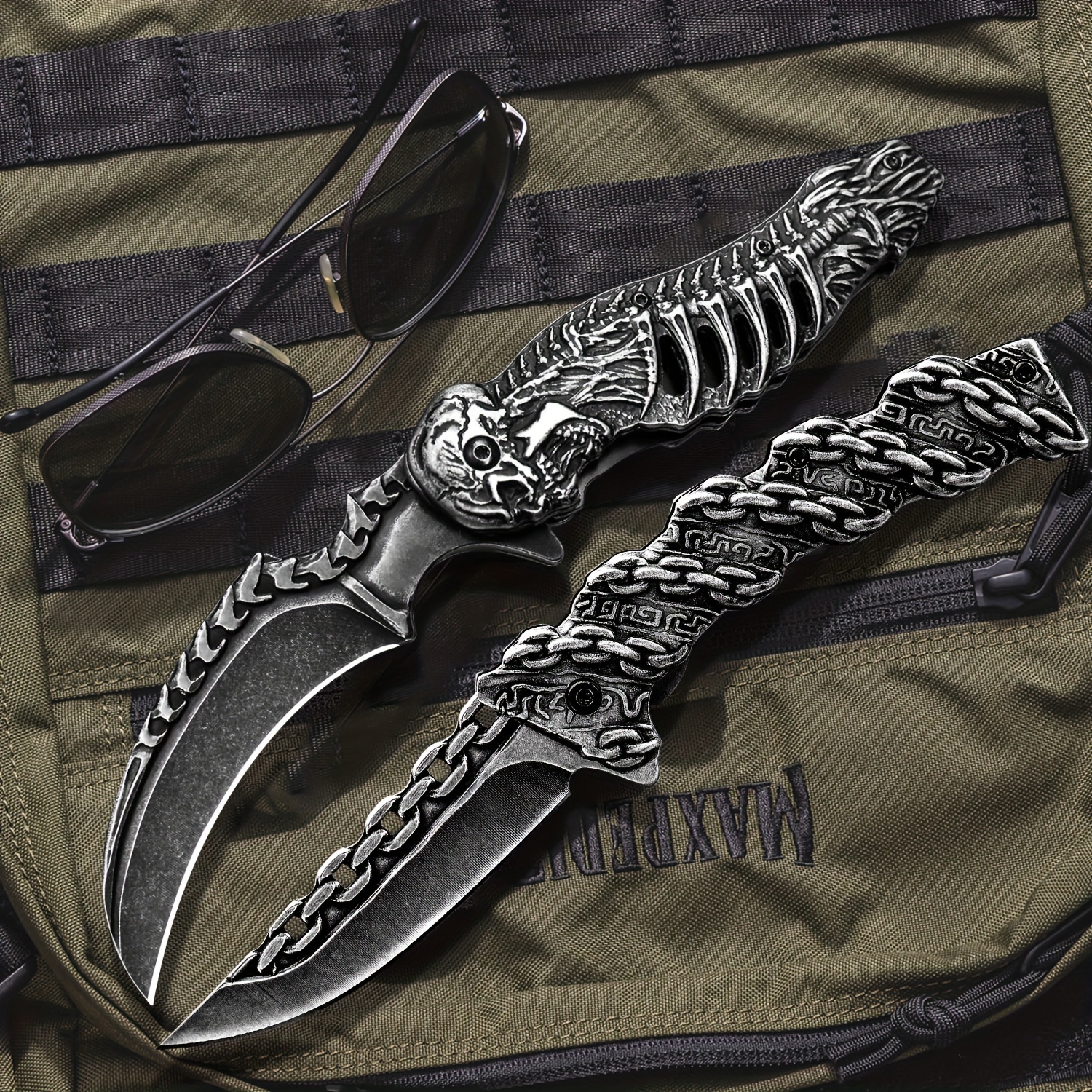 SPECIFICATIONSBlade Edge Type: Clip pointMaterial: Stainless SteelBrand: VivicreateItem ID: VL228972Vivicreate Fantasy Pocket Knife, 2 Pcs Set Pocket Knife, Stainless Steel Blade, SKU: 81592484$23.36PriceModelPK-204DQuantity*Add to Cart
