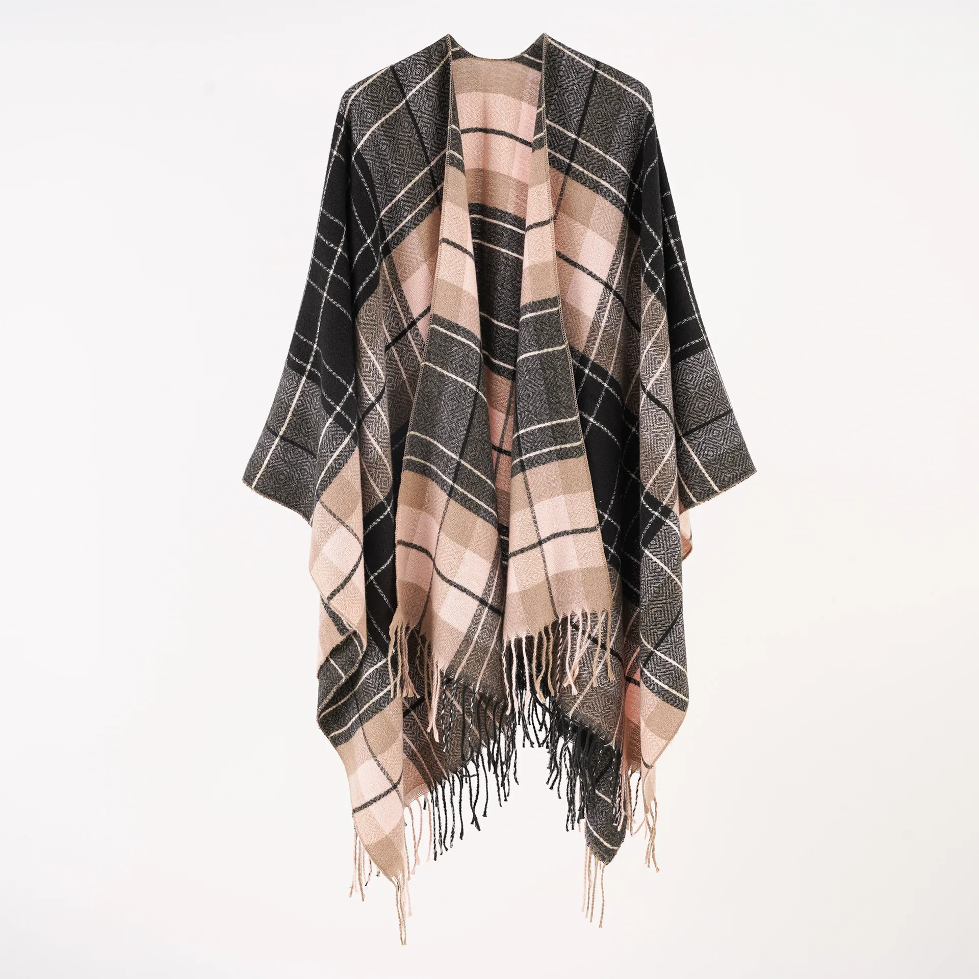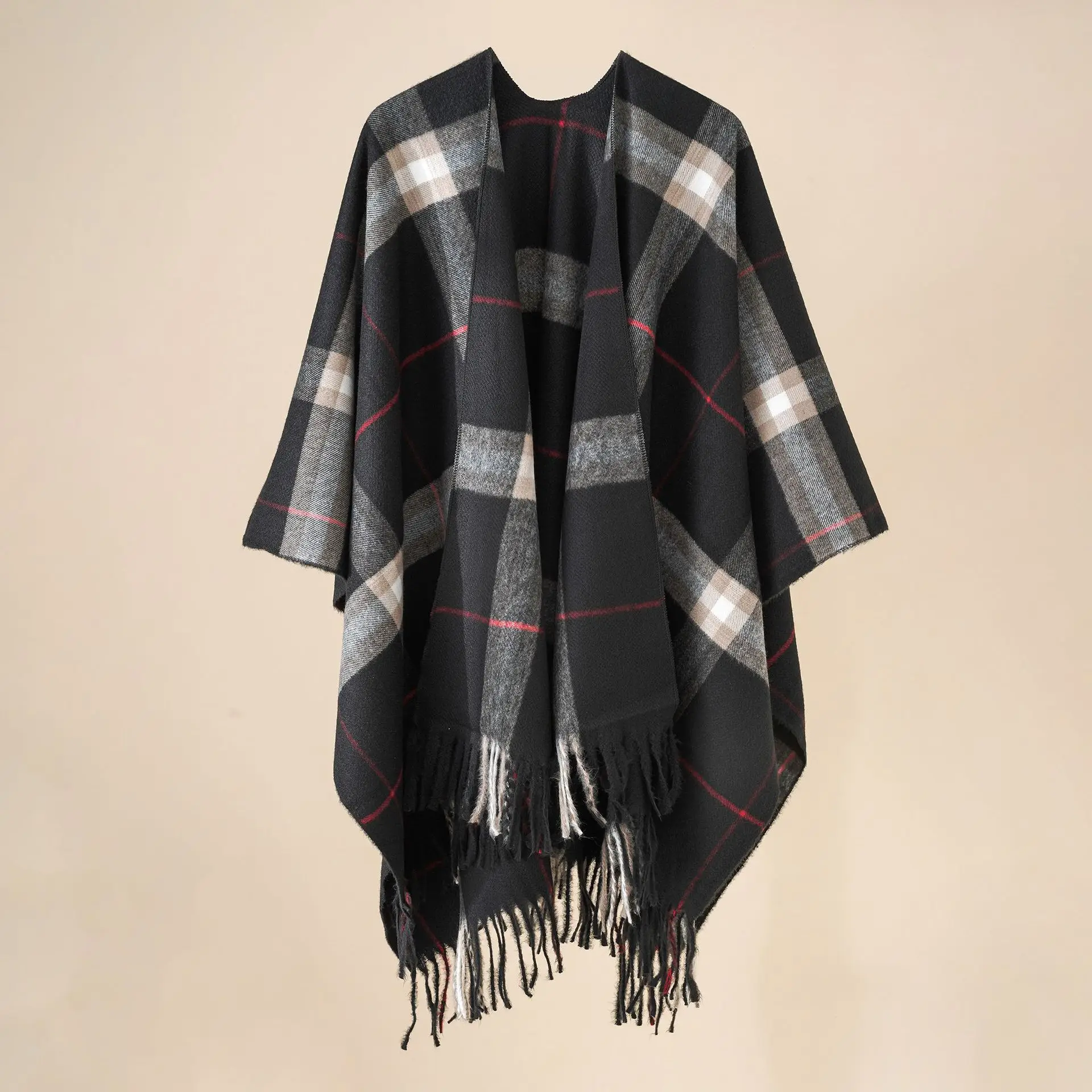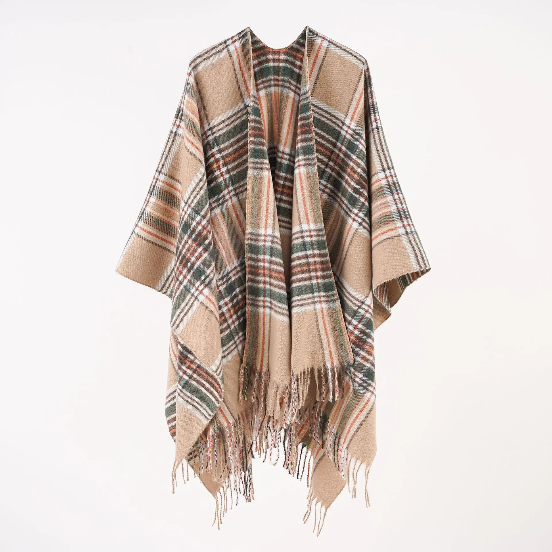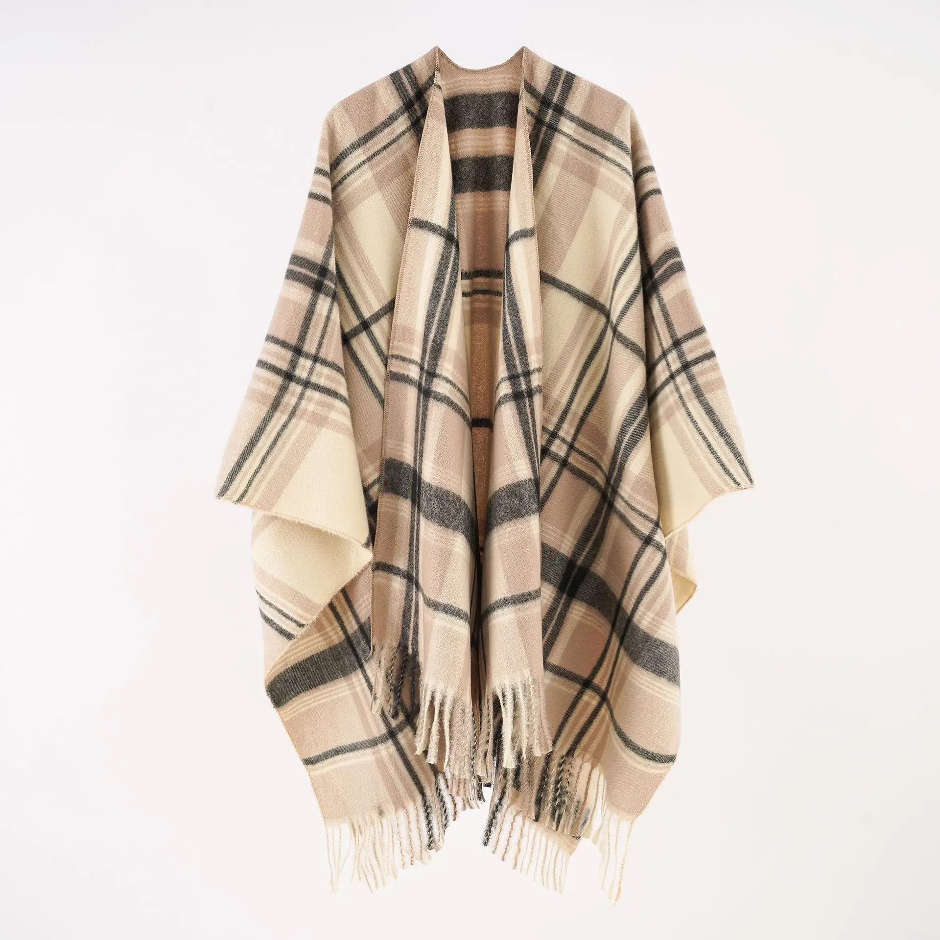 Women Cashmere Feeling Shawl Lady Classic Plaid Cape Spring Autumn Retro Cardiga
