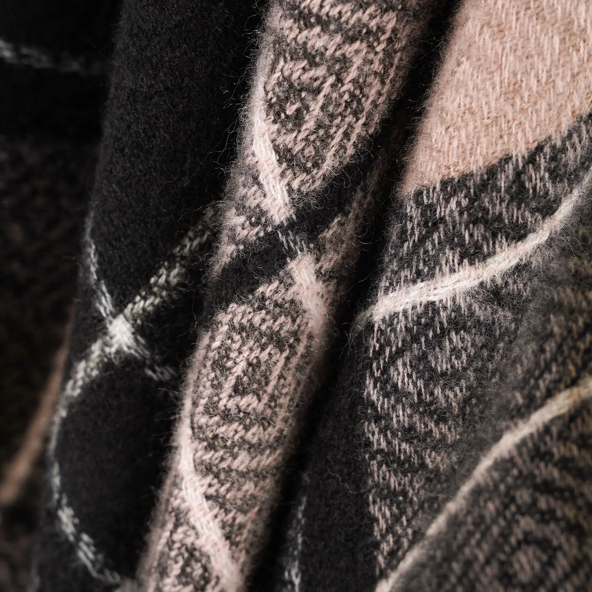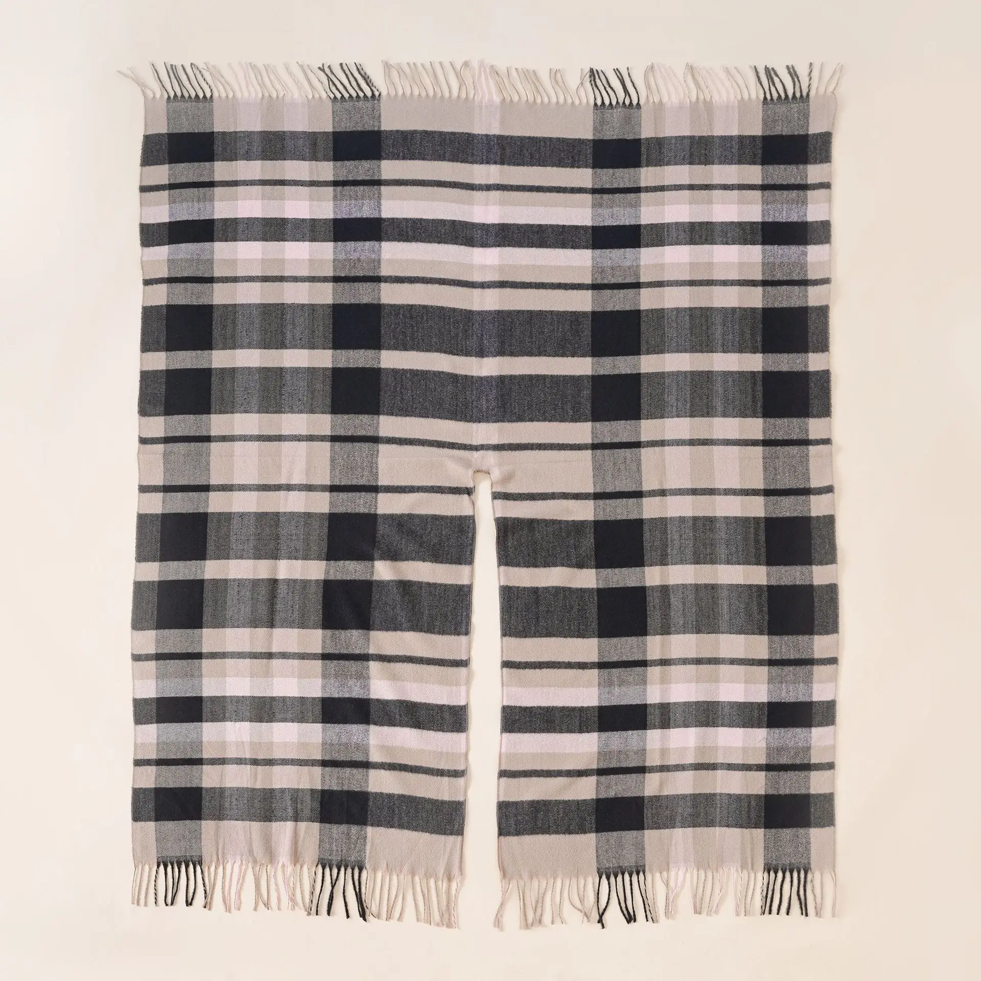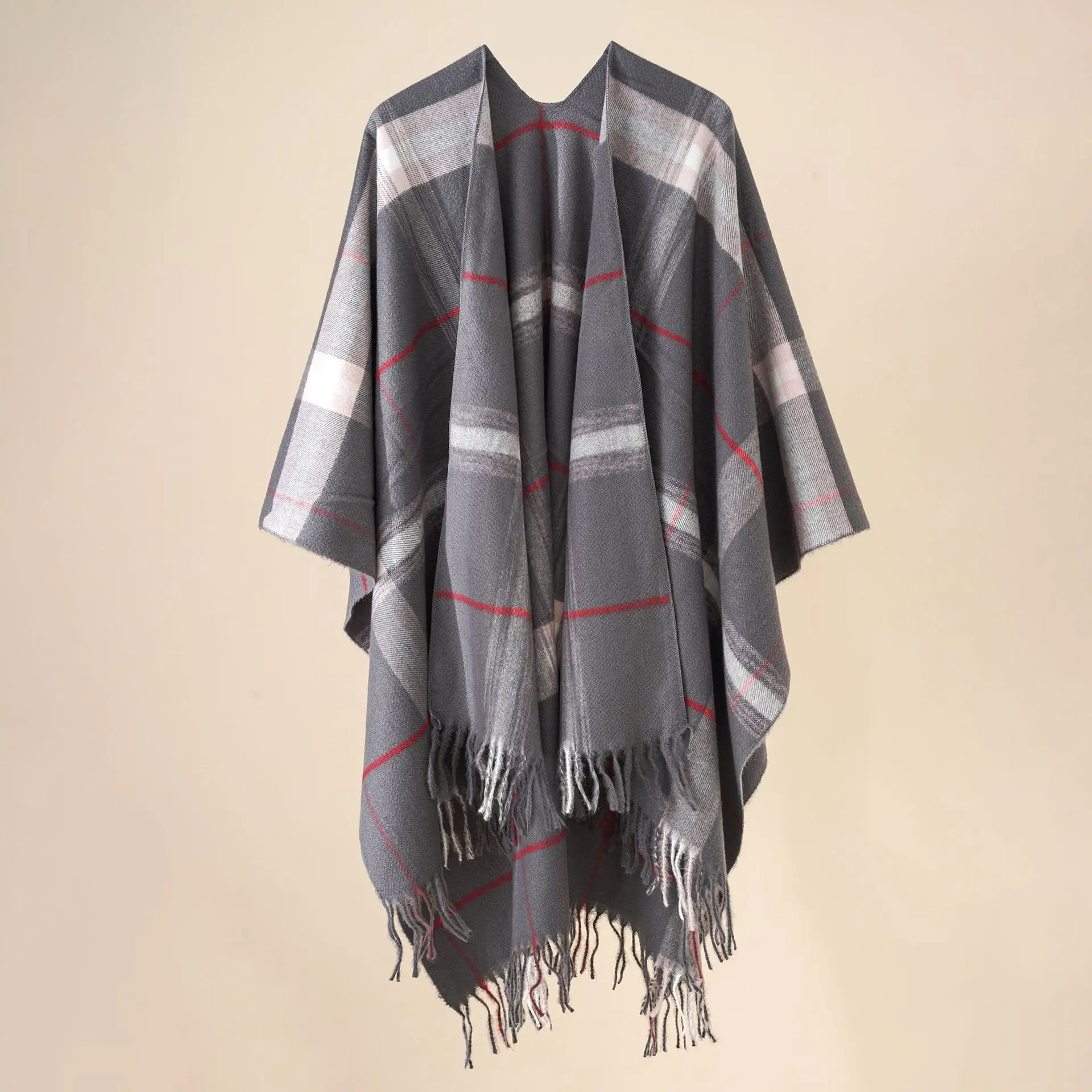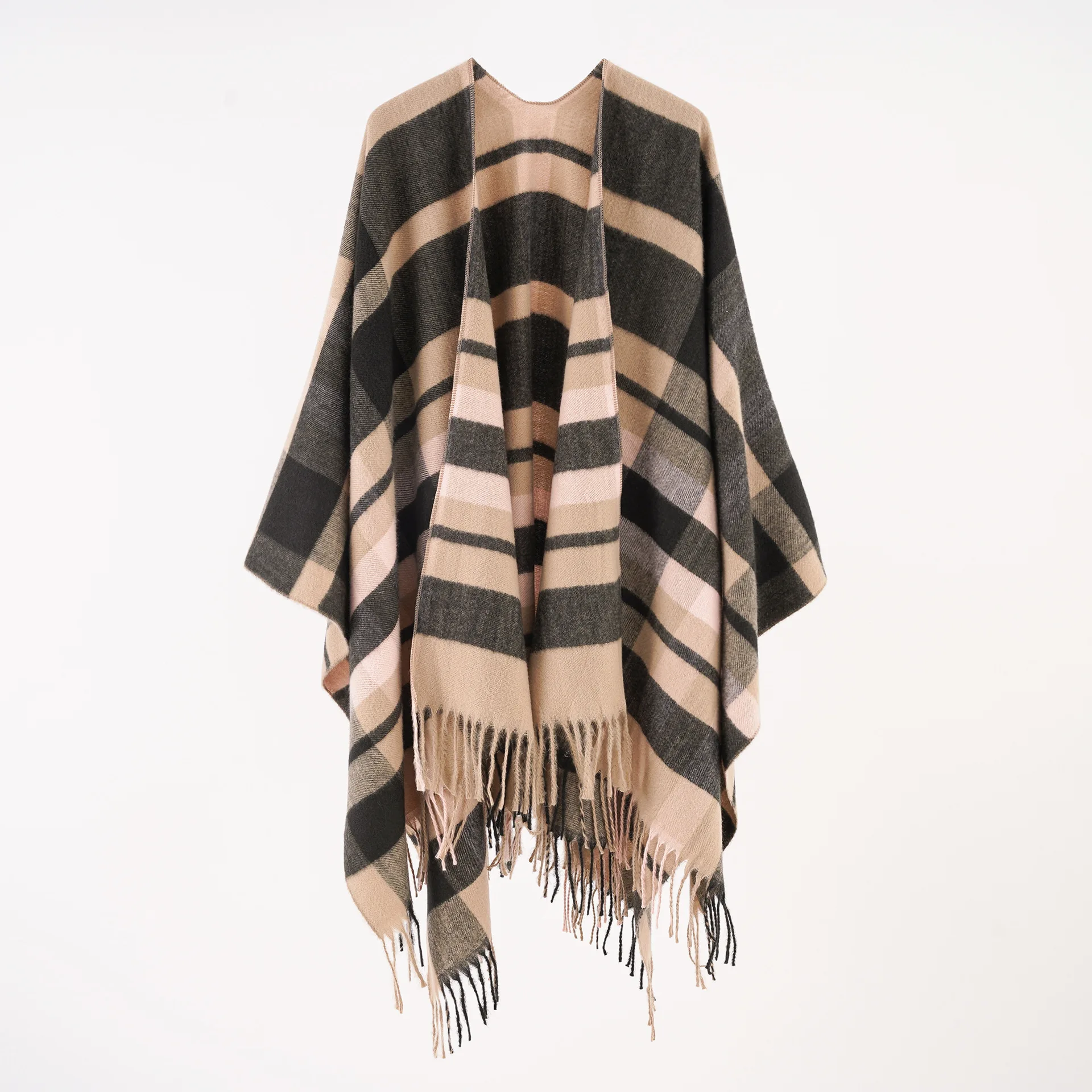 Women Cashmere Feeling Shawl Lady Classic Plaid Cape Spring Autumn Retro Cardiga