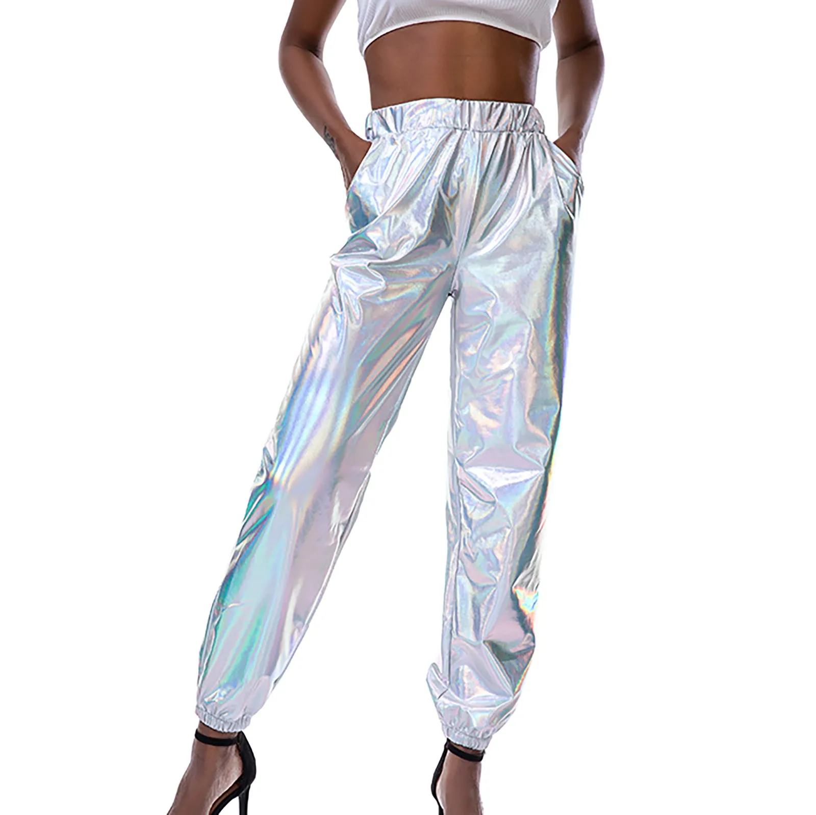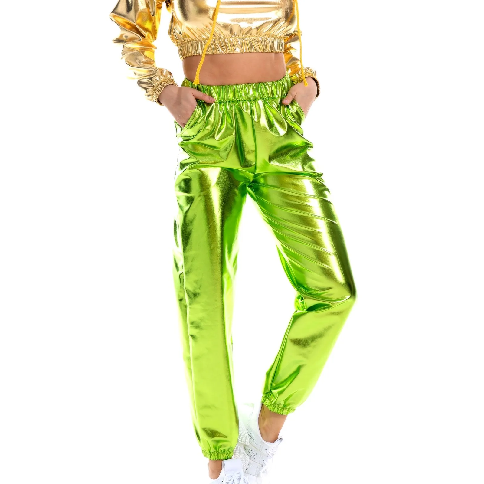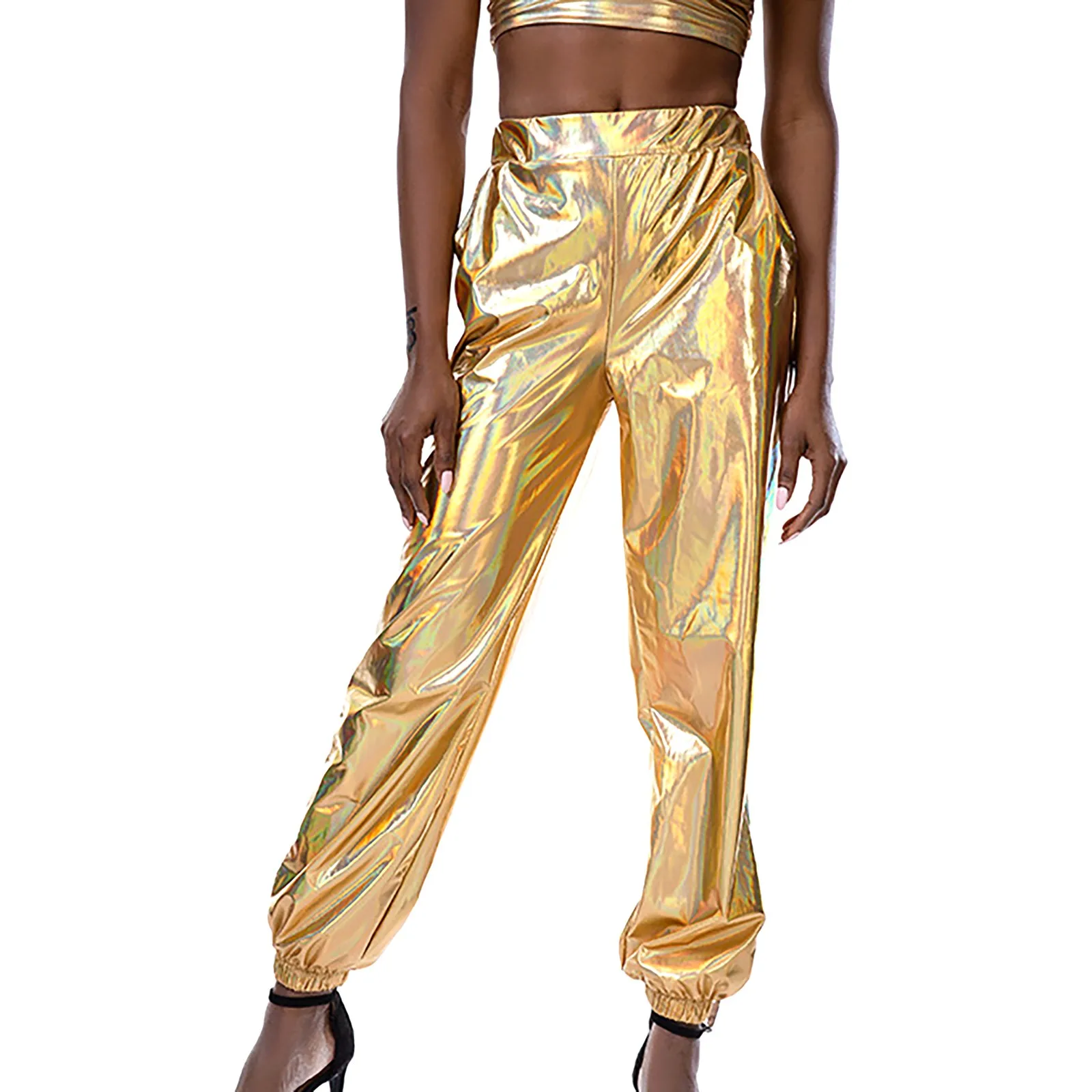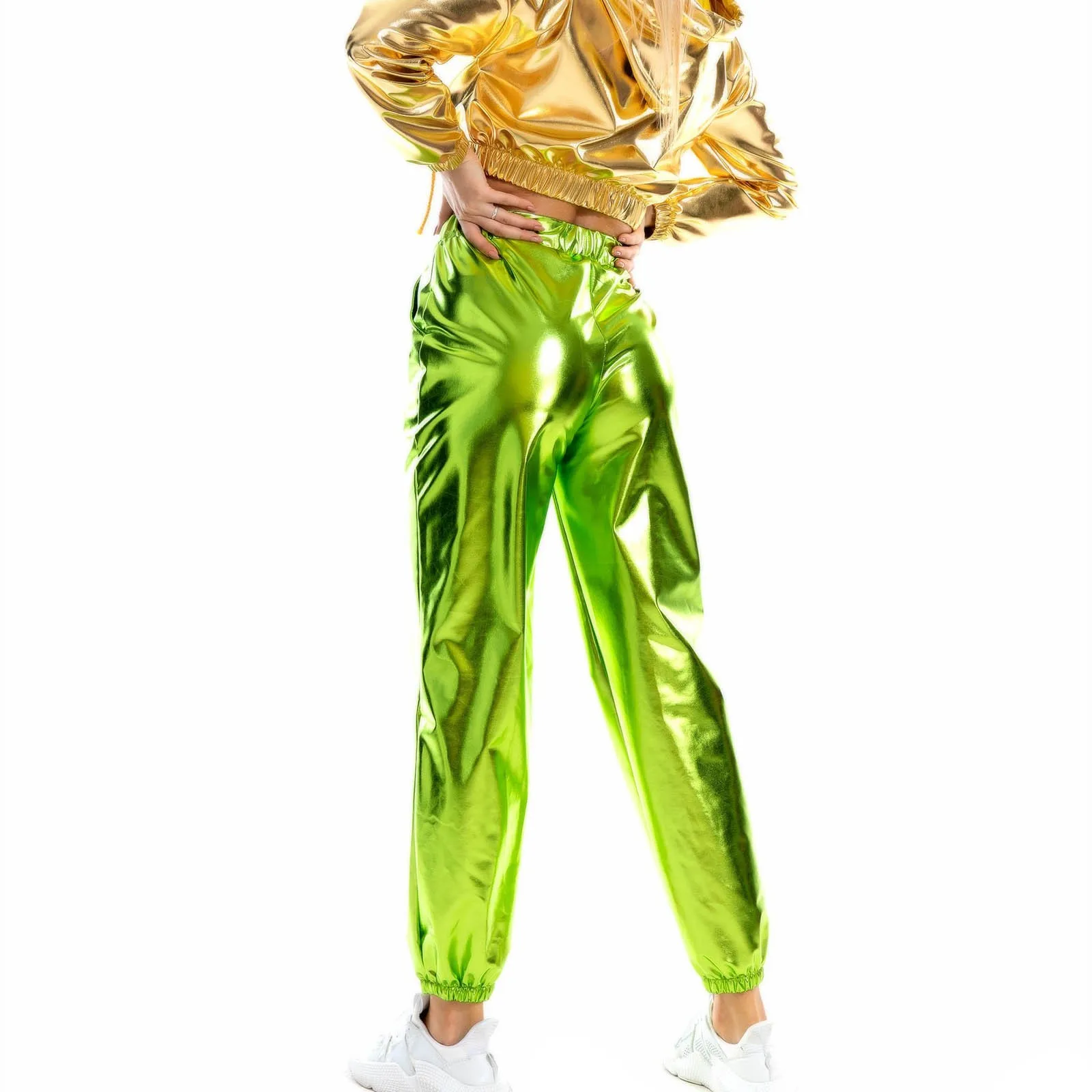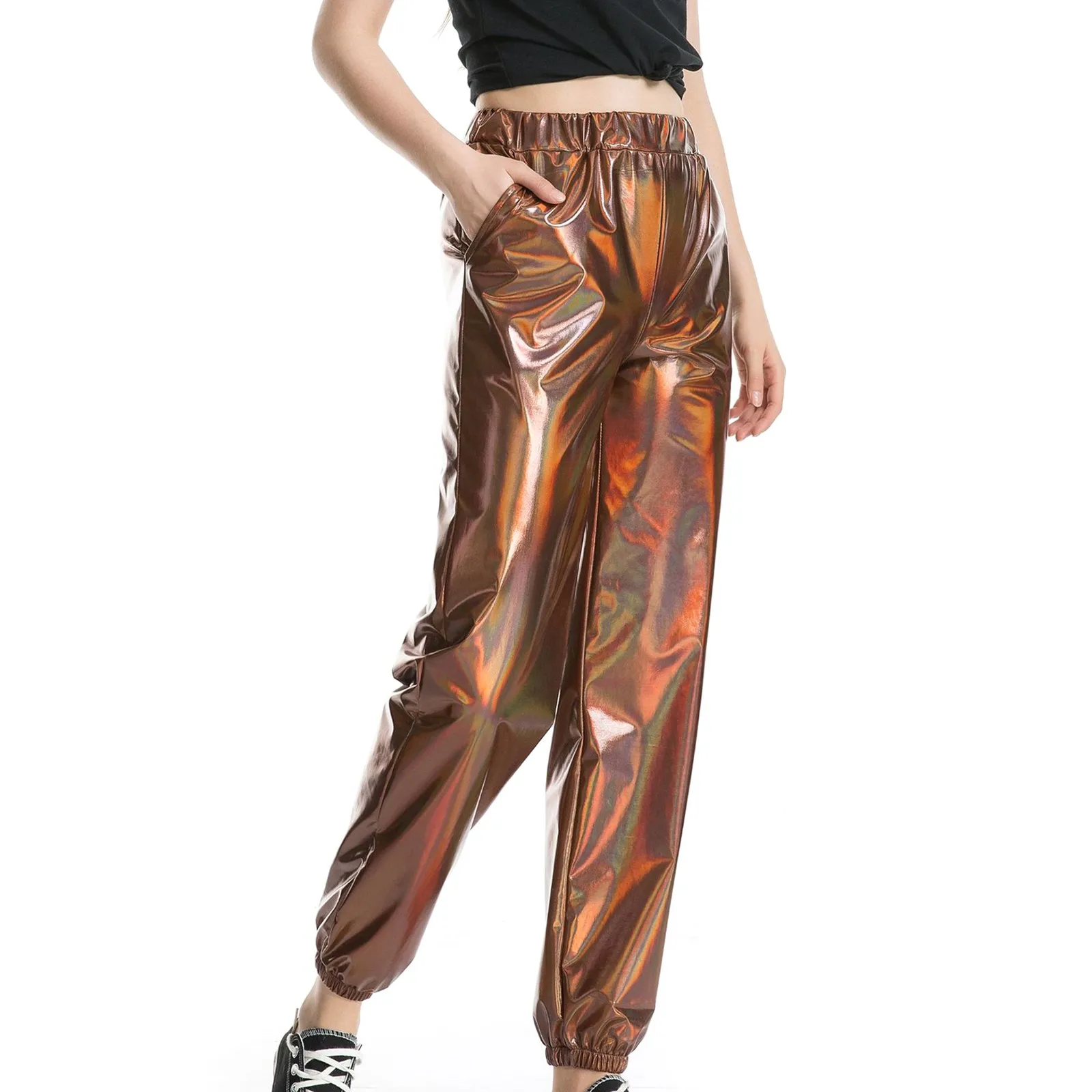 Women's Shiny Trousers Elastic Sports Trousers Loose Leisure Casual Long Trousers Sweatpants Jogging Bottoms Stretch Leggings Party Disco Clubwear